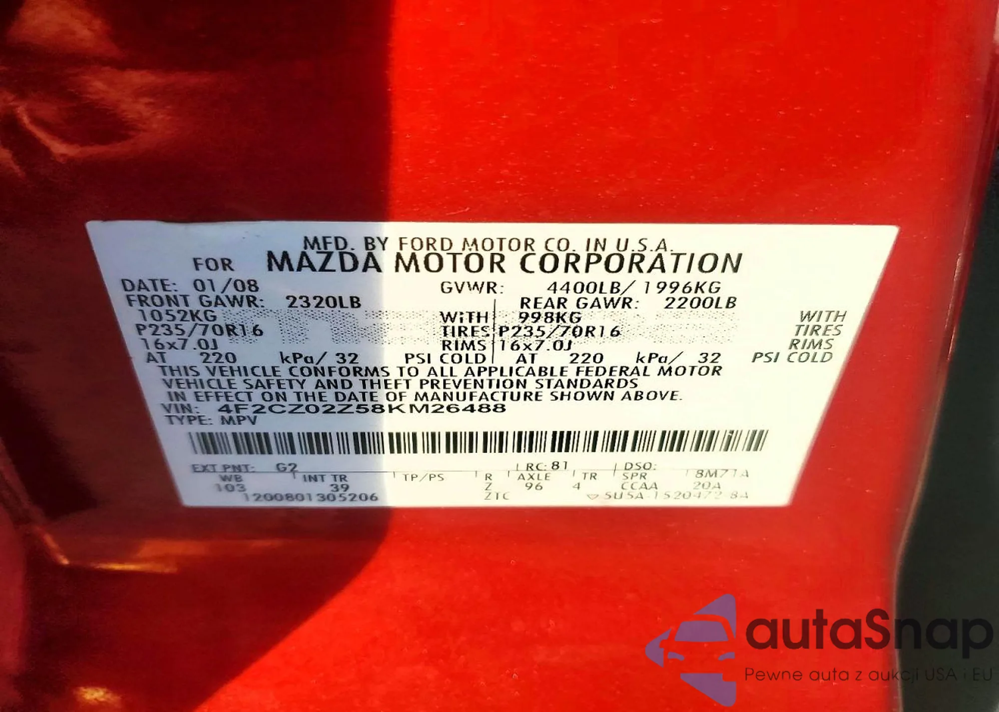 VIN: 4F2CZ02Z58KM26488