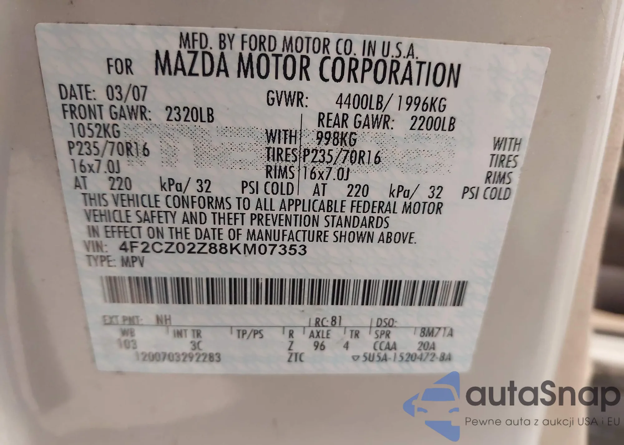 VIN: 4F2CZ02Z88KM07353