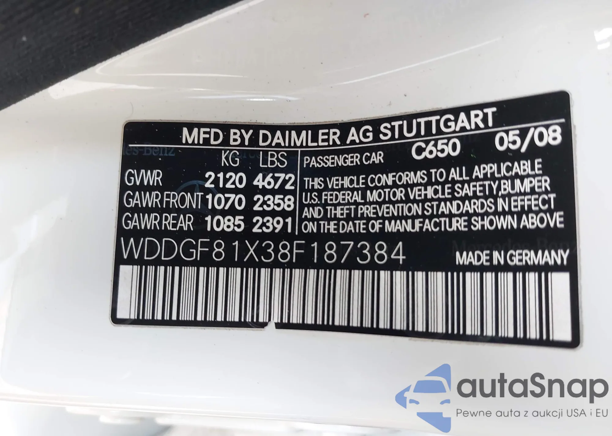 VIN: WDDGF81X38F187384