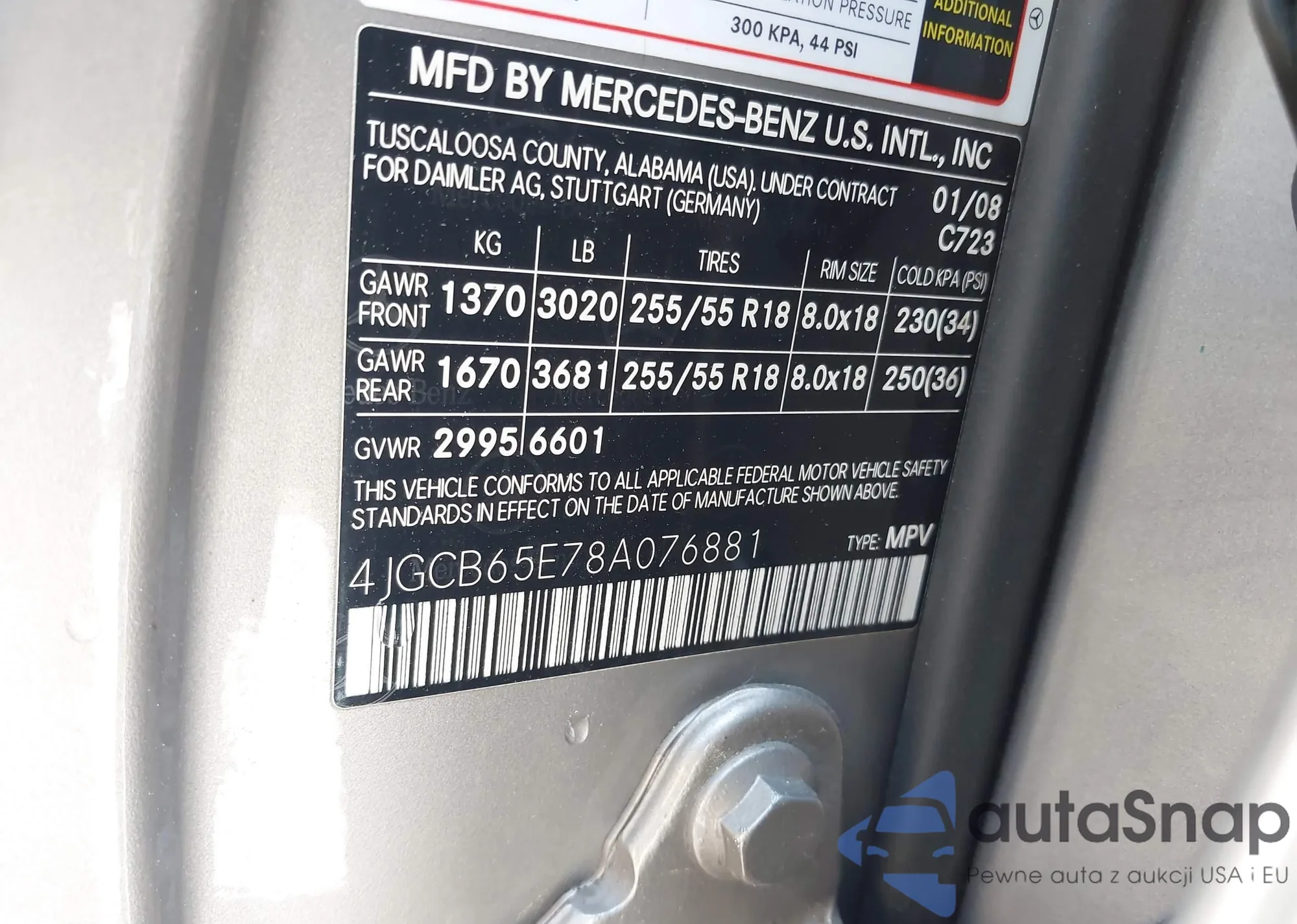 VIN: 4JGCB65E78A076881