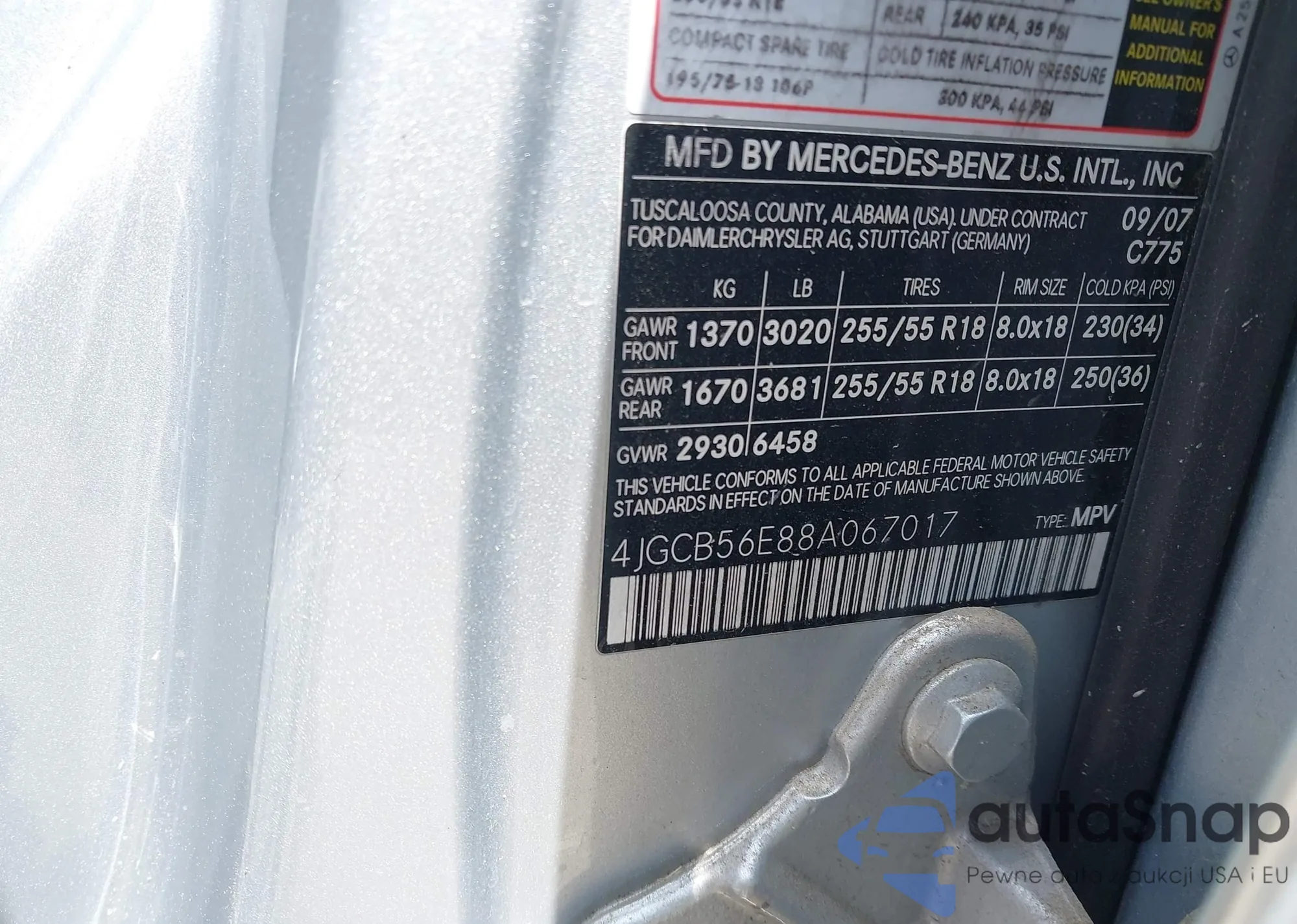 • VIN: 4JGCB56E88A067017