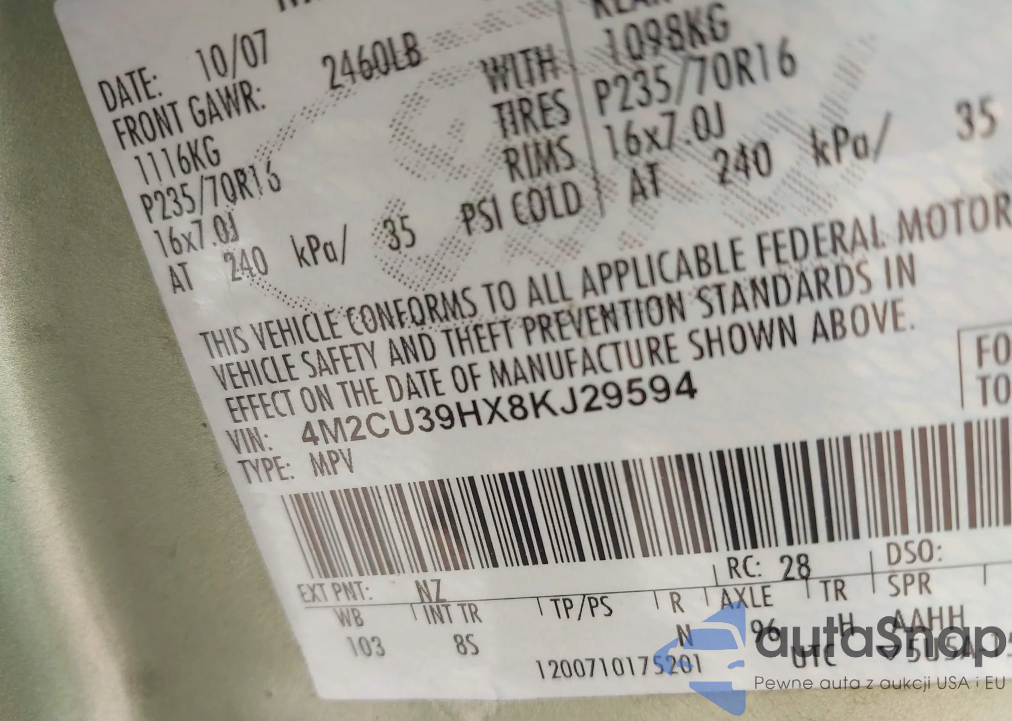 VIN: 4M2CU39HX8KJ29594