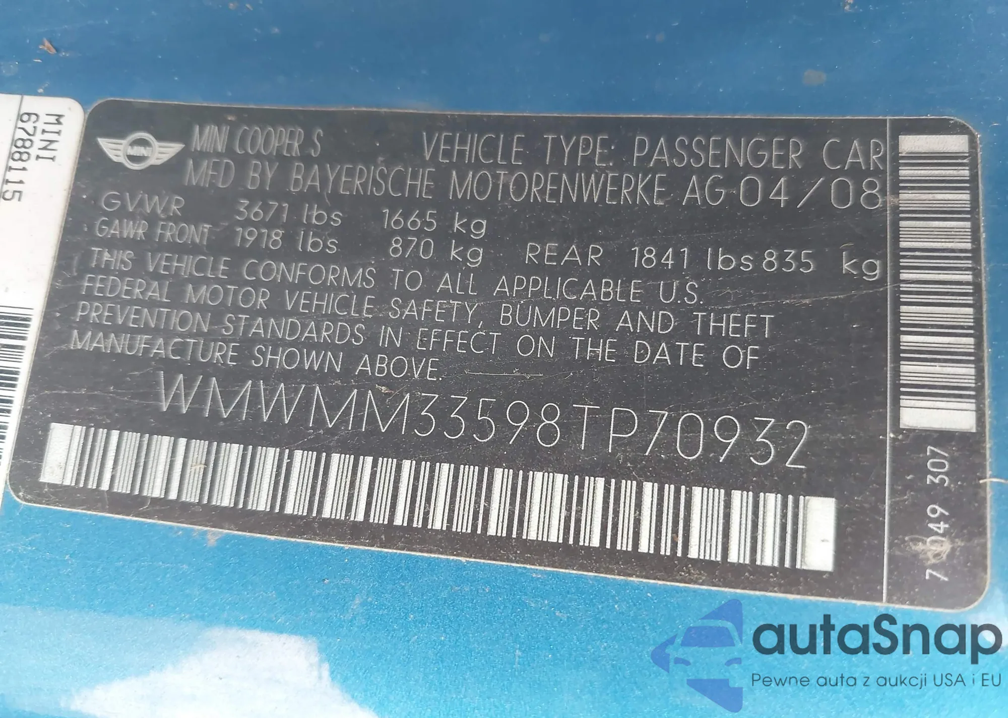 VIN: WMWMM33598TP70932