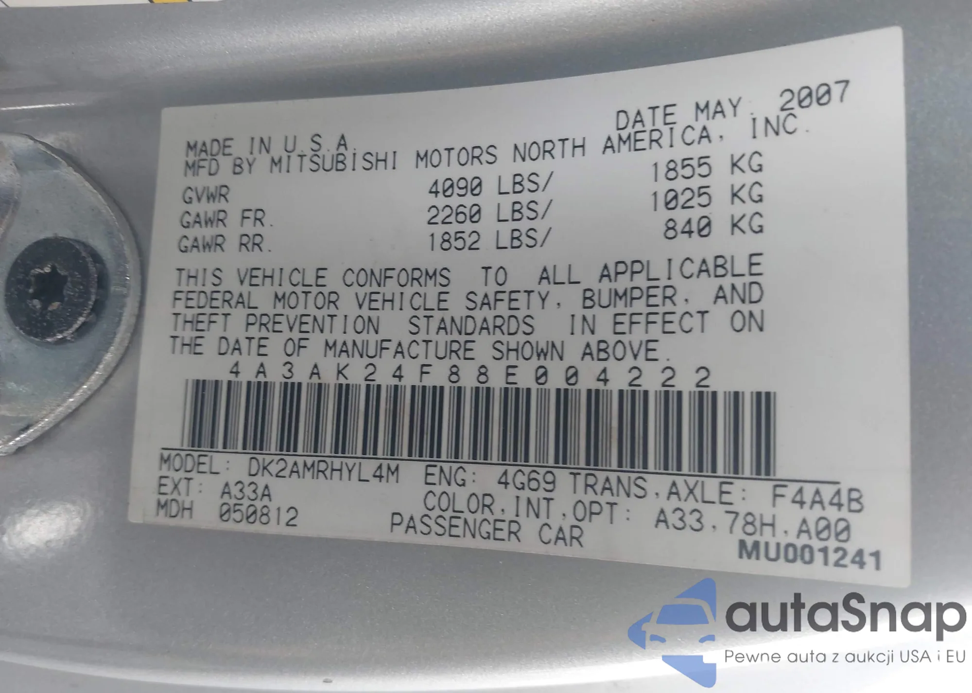 • VIN: 4A3AK24F88E004222