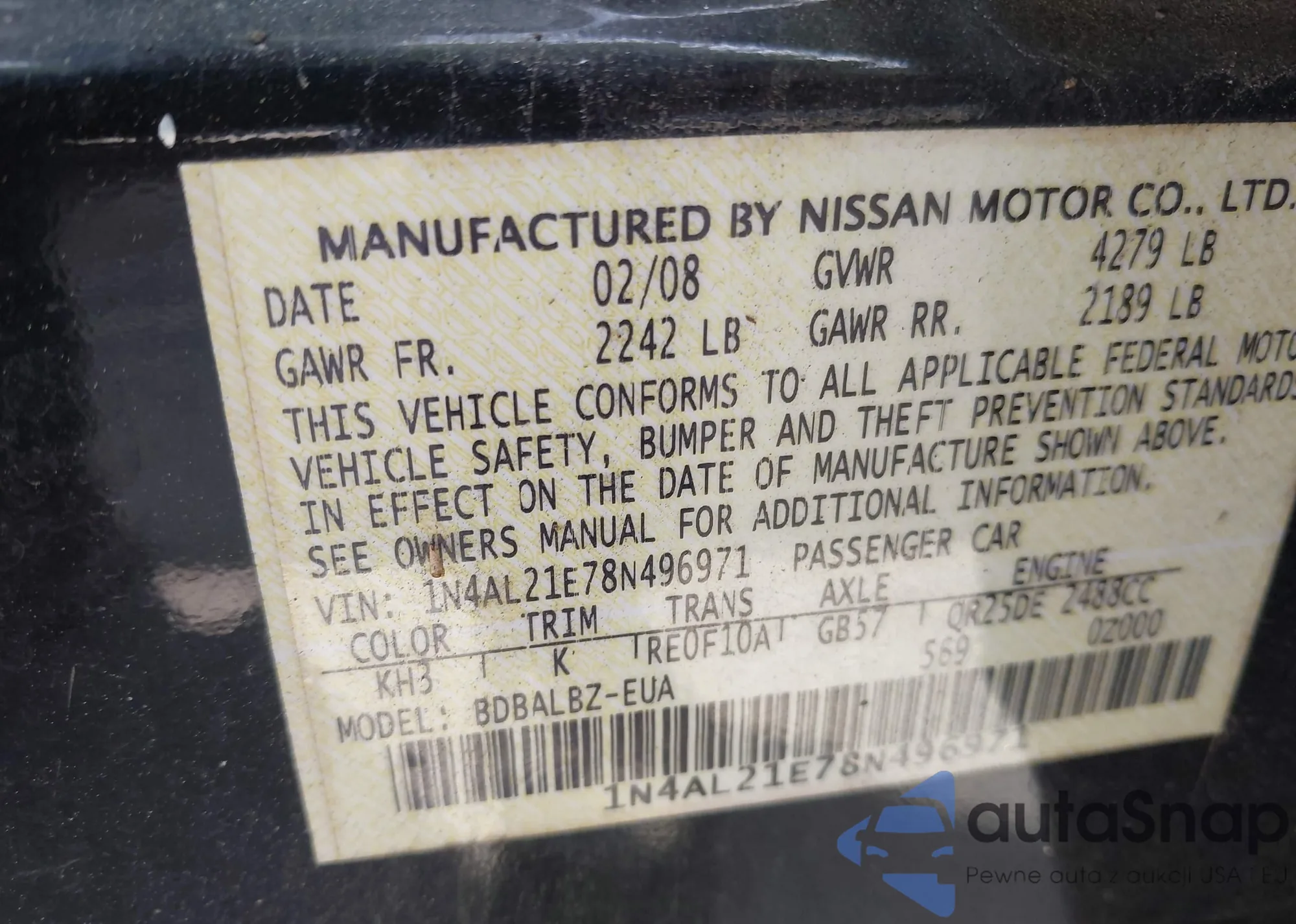 VIN: 1N4AL21E78N496971
