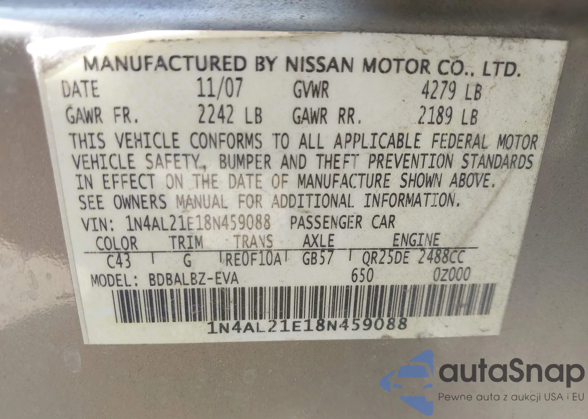 • VIN: 1N4AL21E18N459088