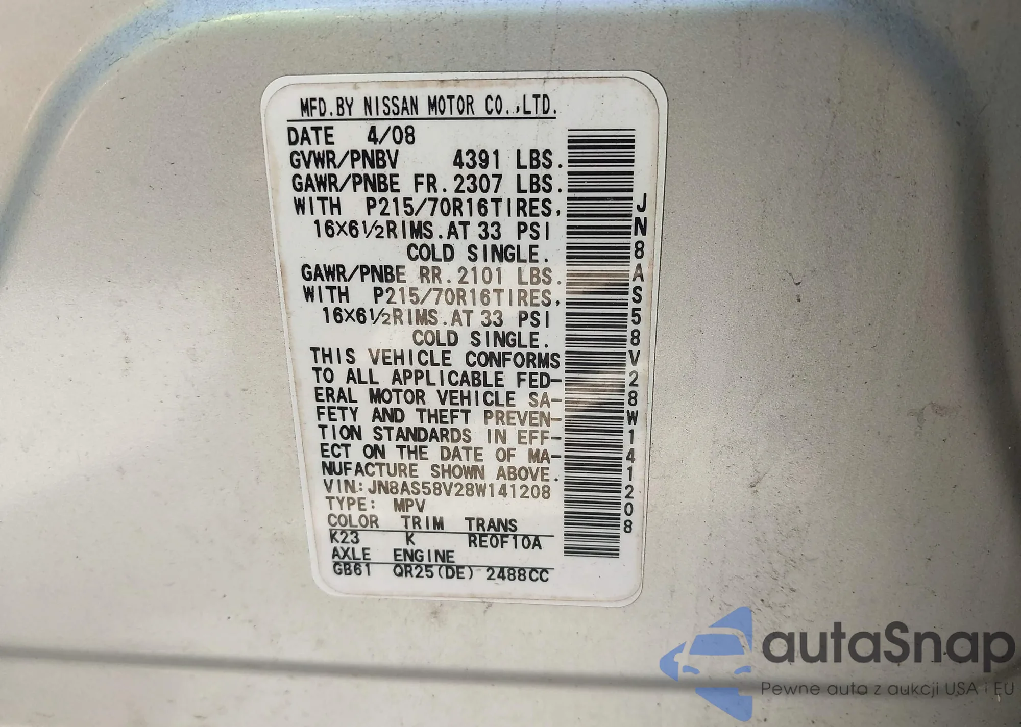 VIN: JN8AS58V28W141208
