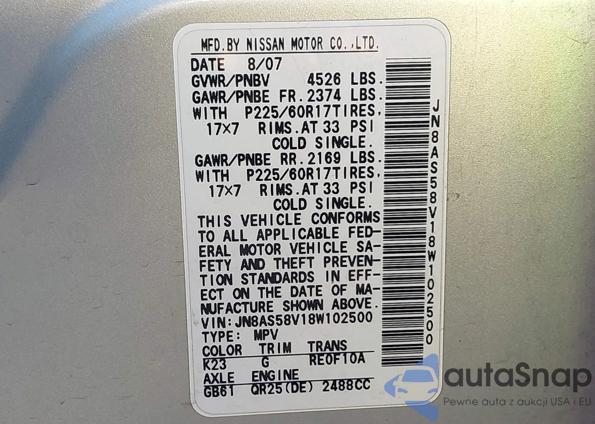 VIN: JN8AS58V18W102500