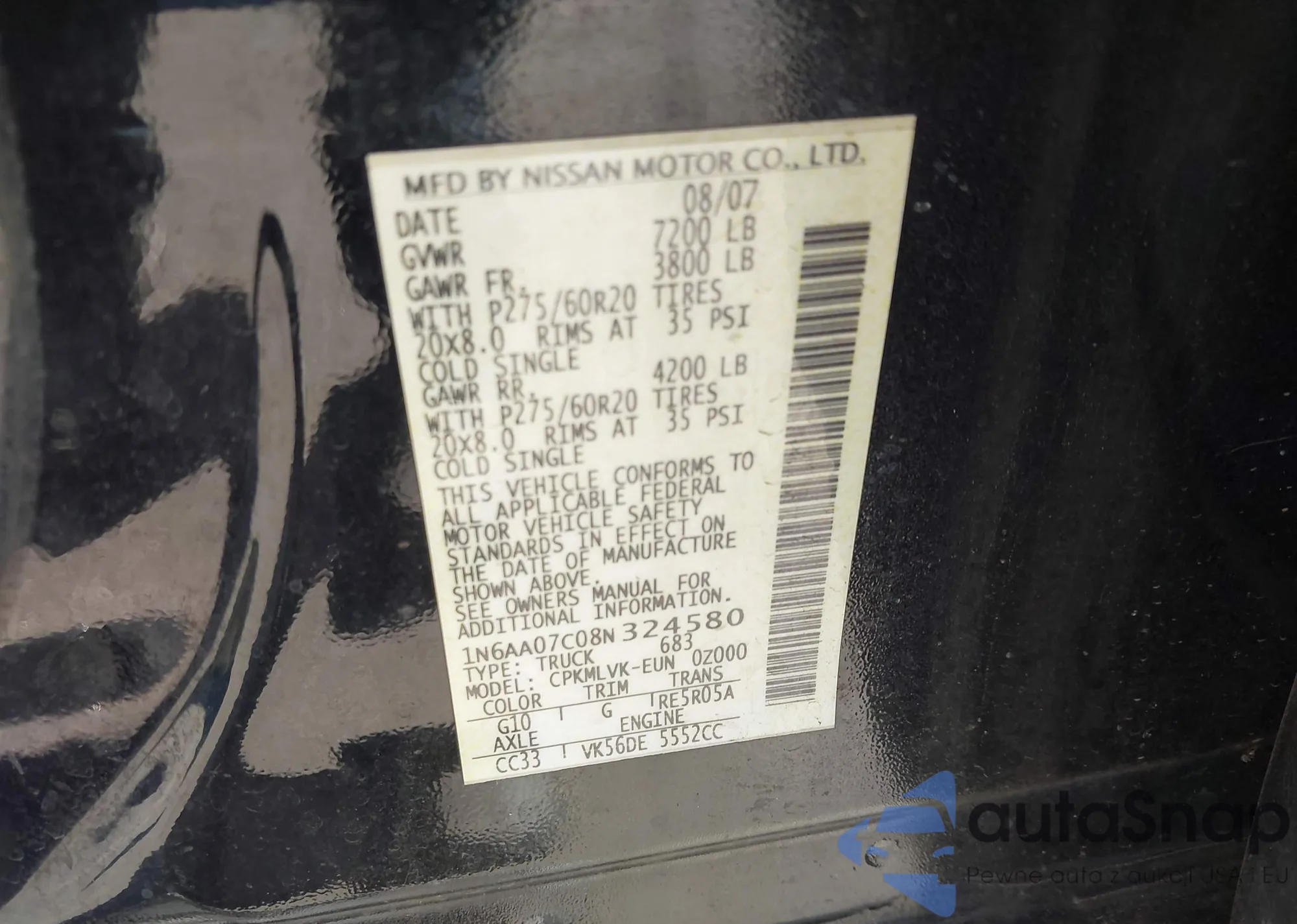 VIN: 1N6AA07C08N324580