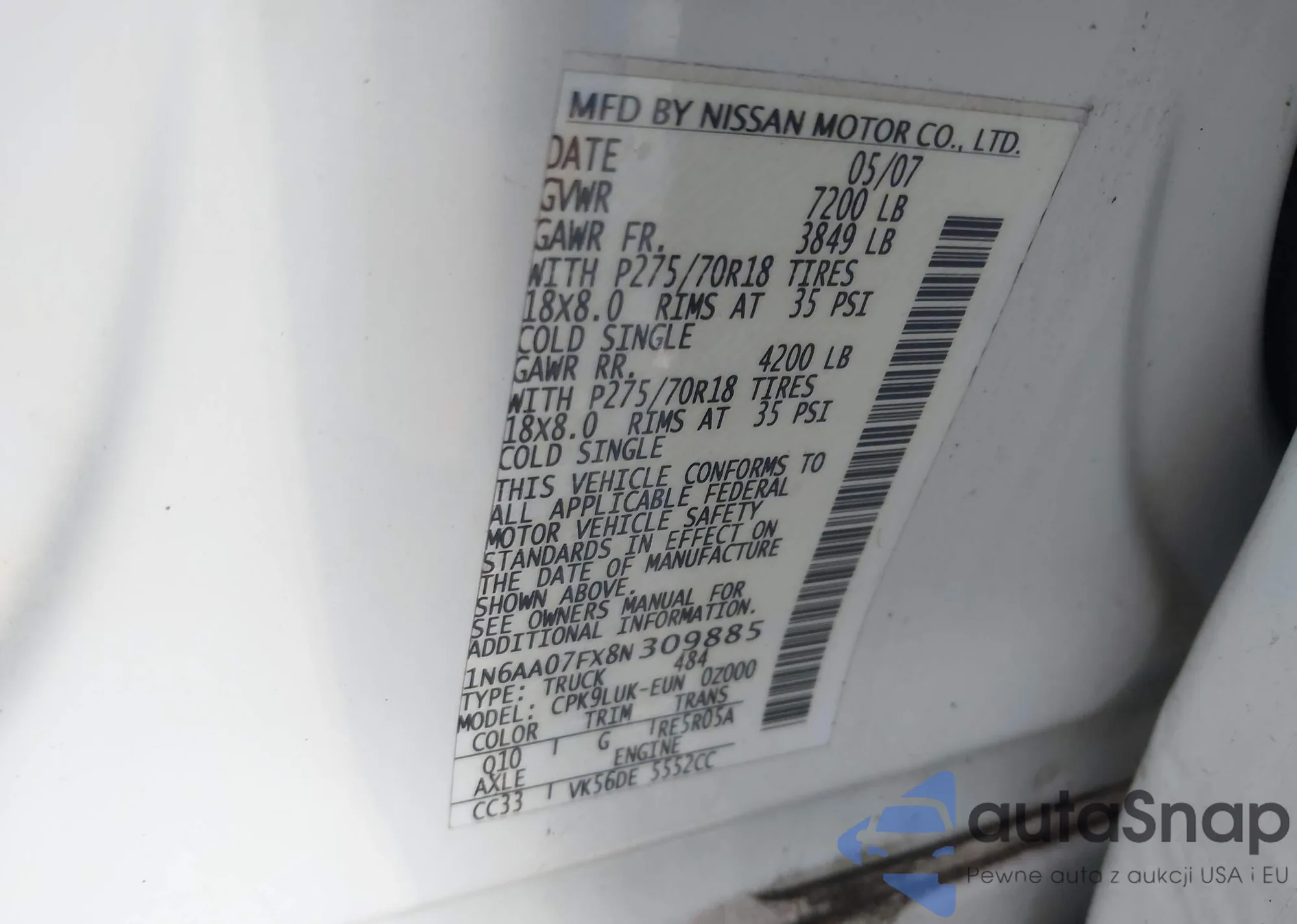 VIN: 1N6AA07FX8N309885