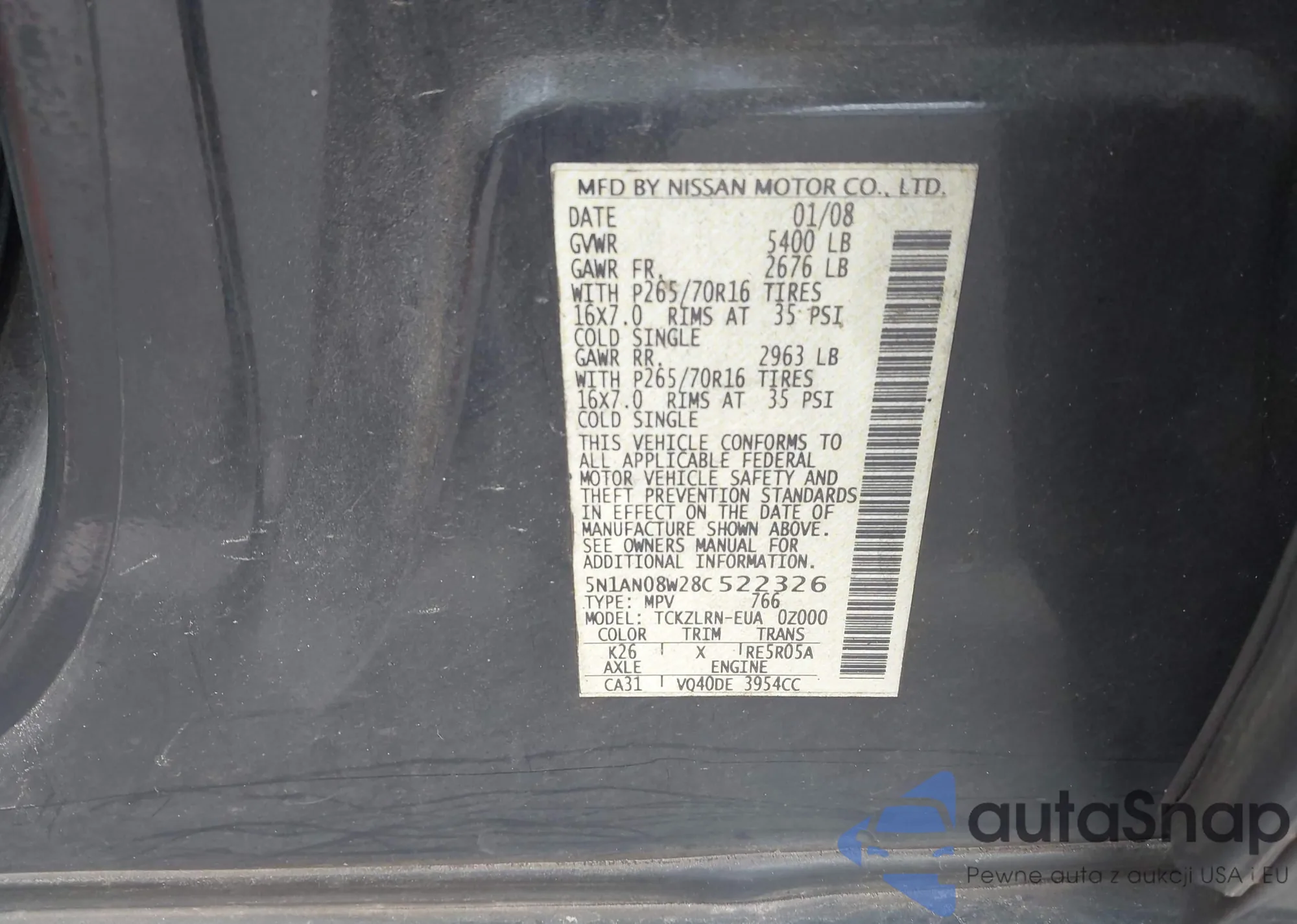 VIN: 5N1AN08W28C522326