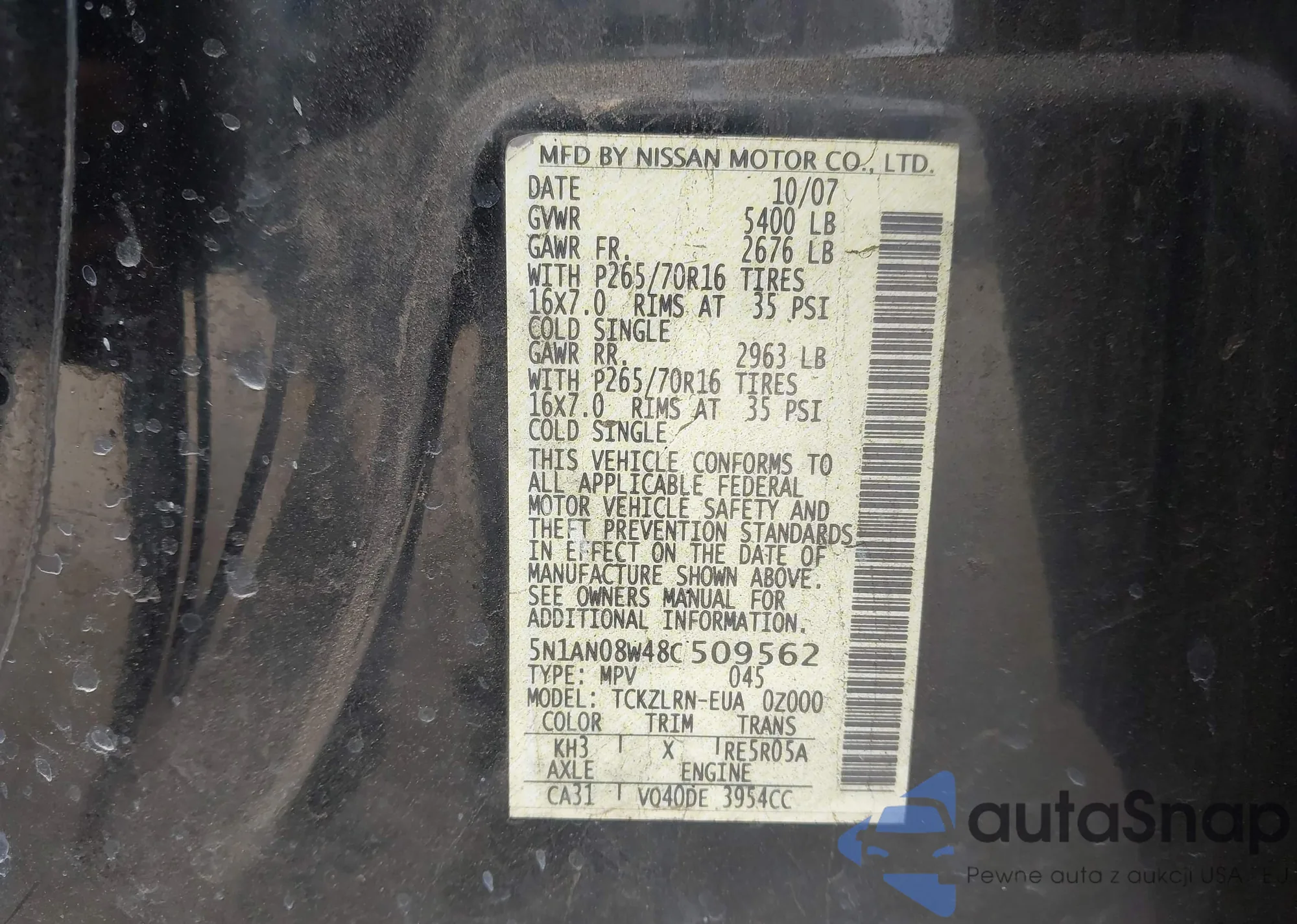 VIN: 5N1AN08W48C509562