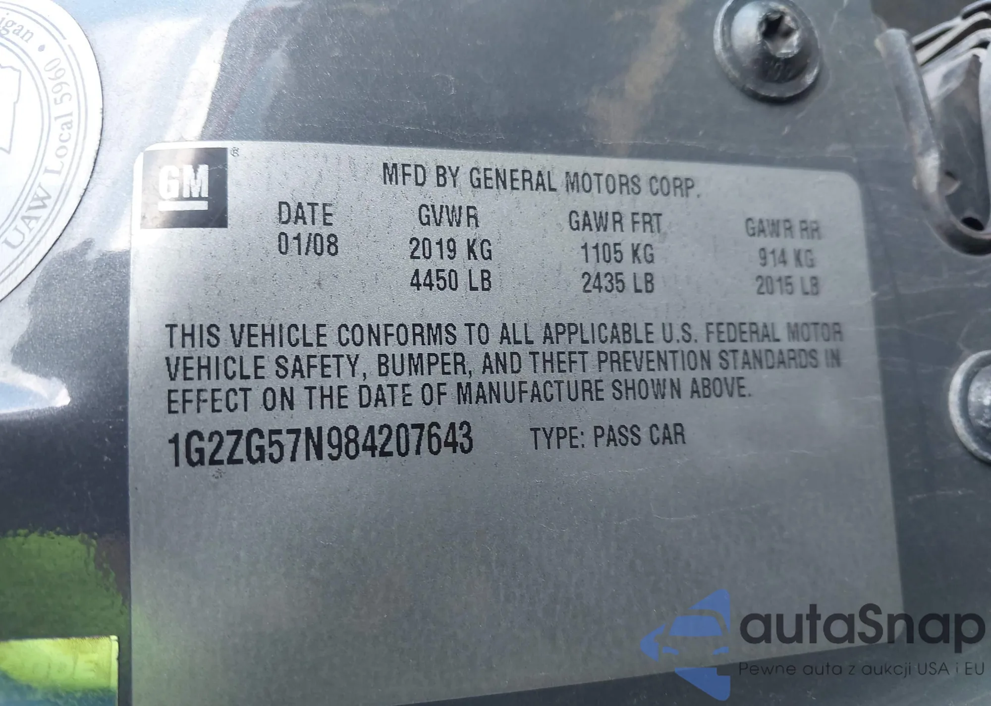 VIN: 1G2ZG57N984207643