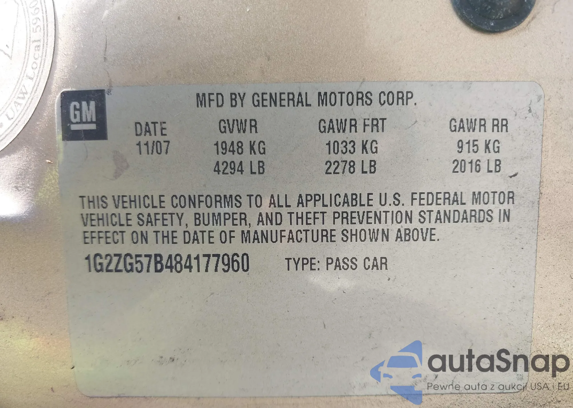 VIN: 1G2ZG57B484177960