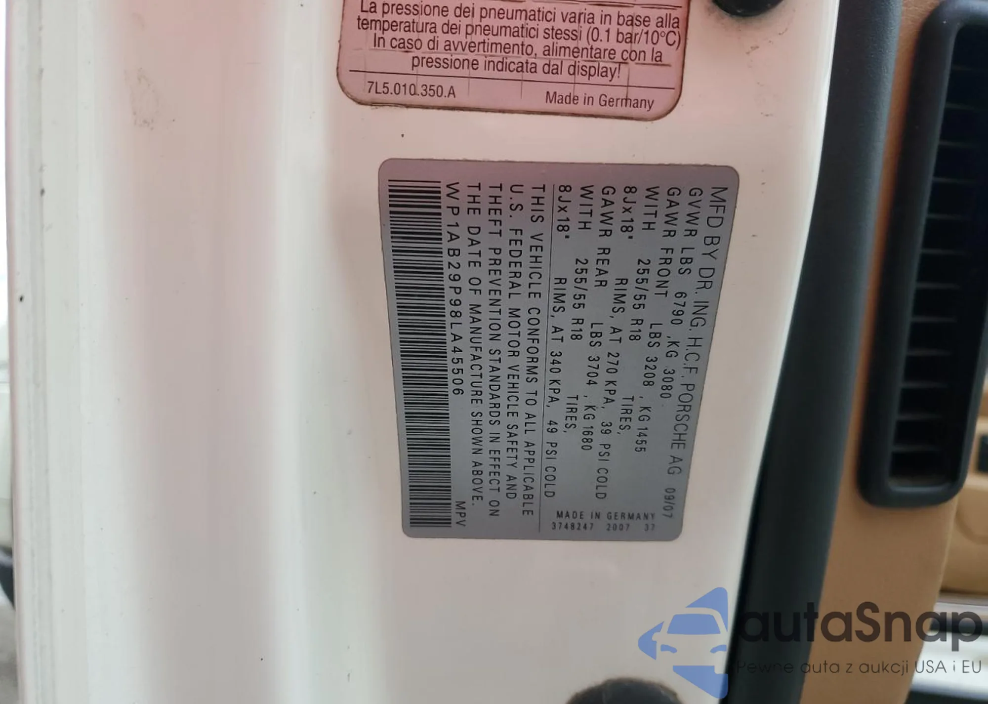 VIN: WP1AB29P98LA45506