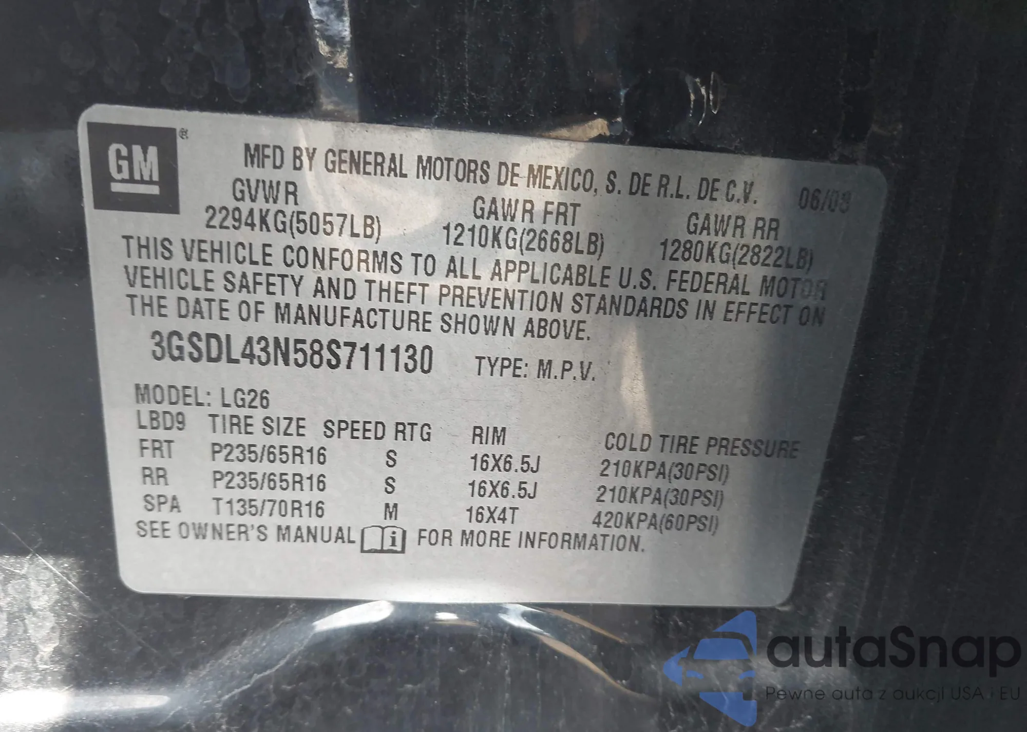 VIN: 3GSDL43N58S711130