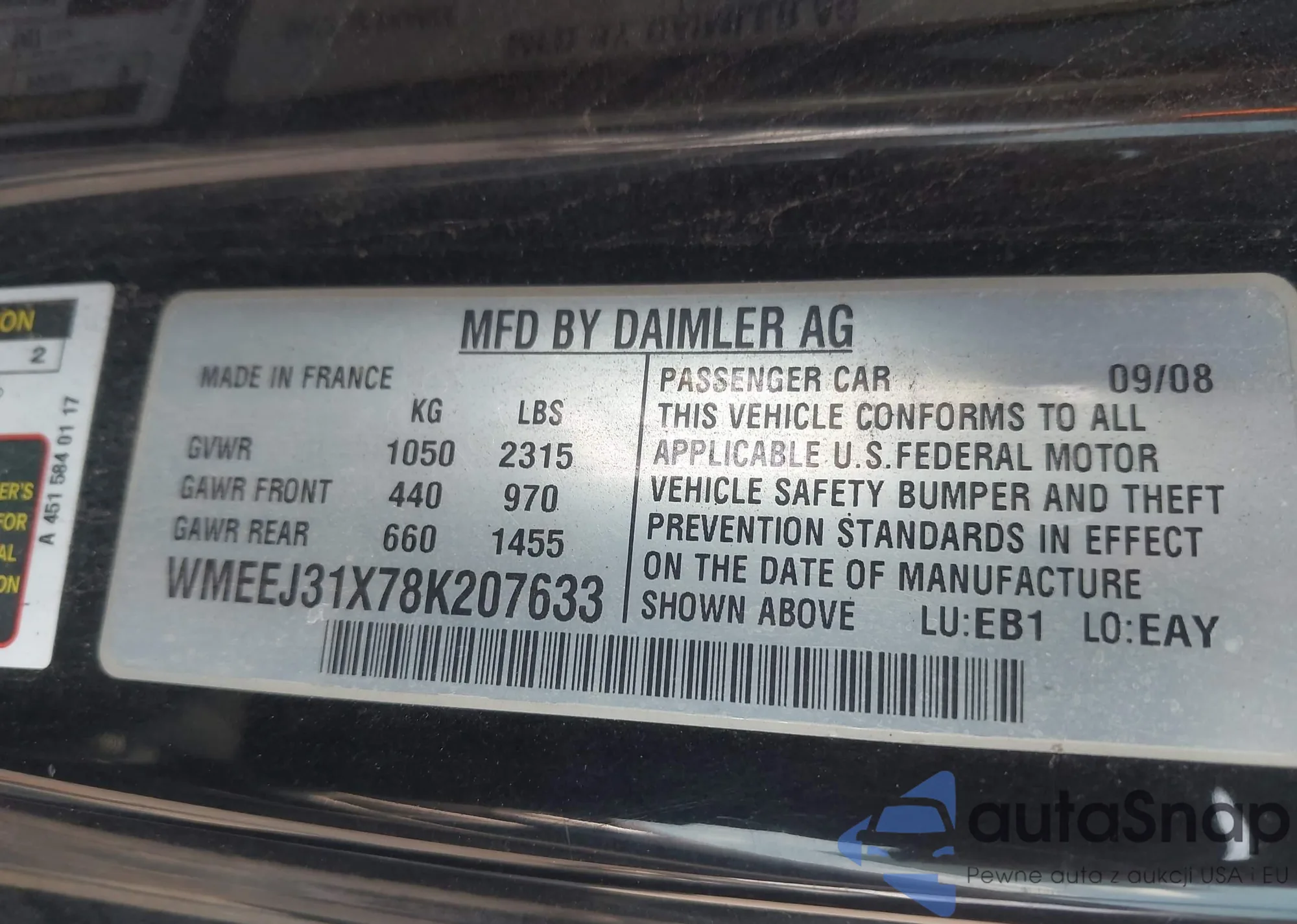 VIN: WMEEJ31X78K207633