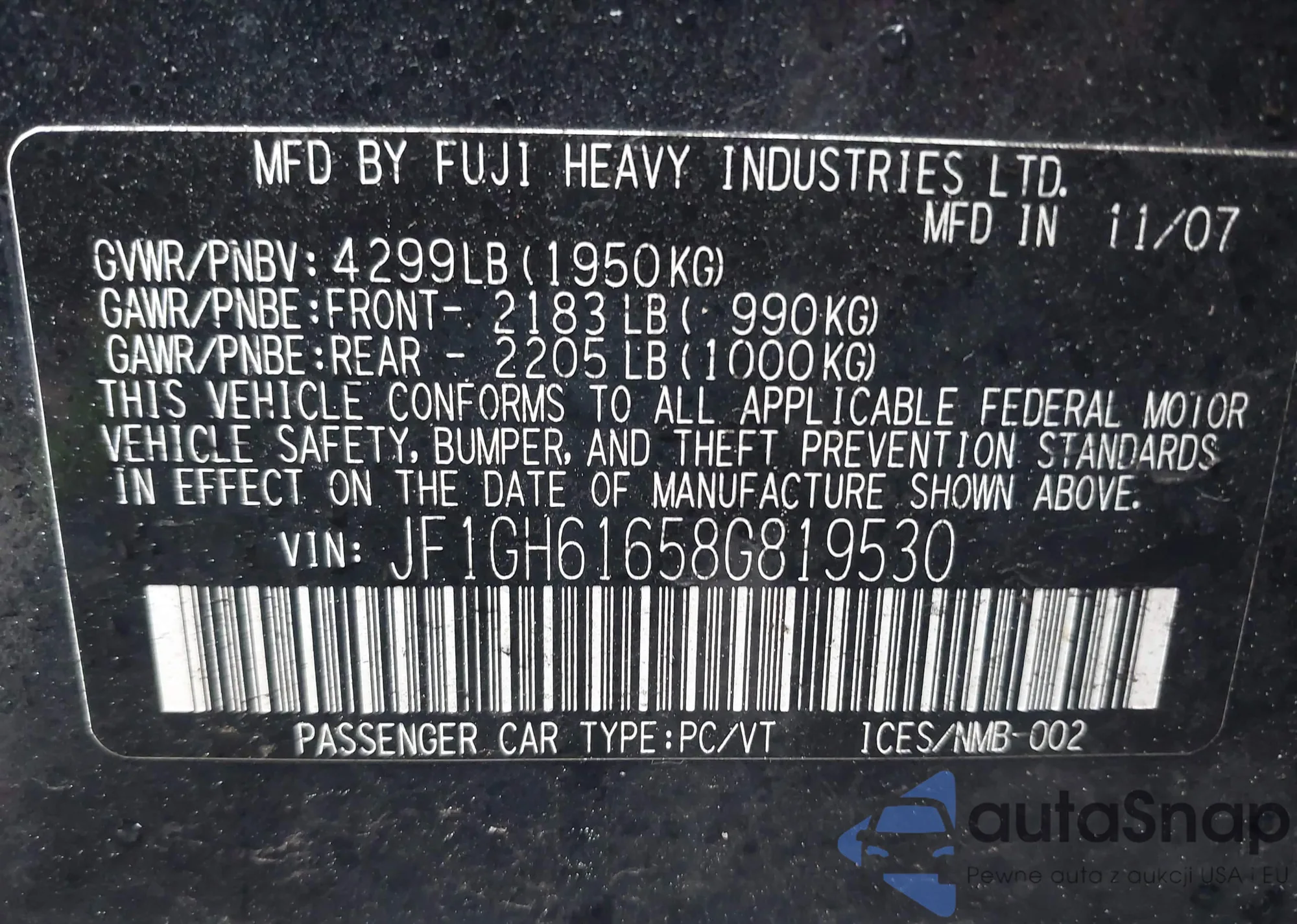 VIN: JF1GH61658G819530