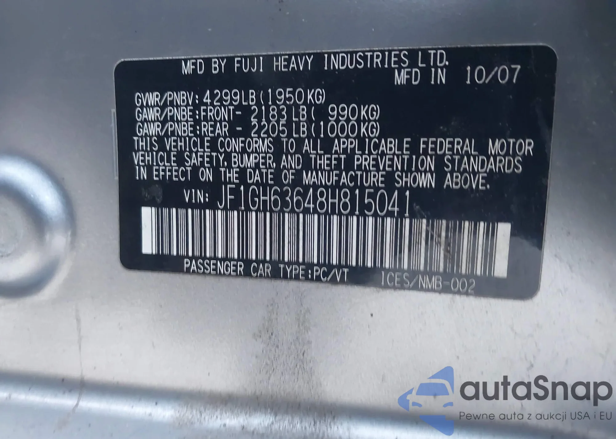 • VIN: JF1GH63648H815041