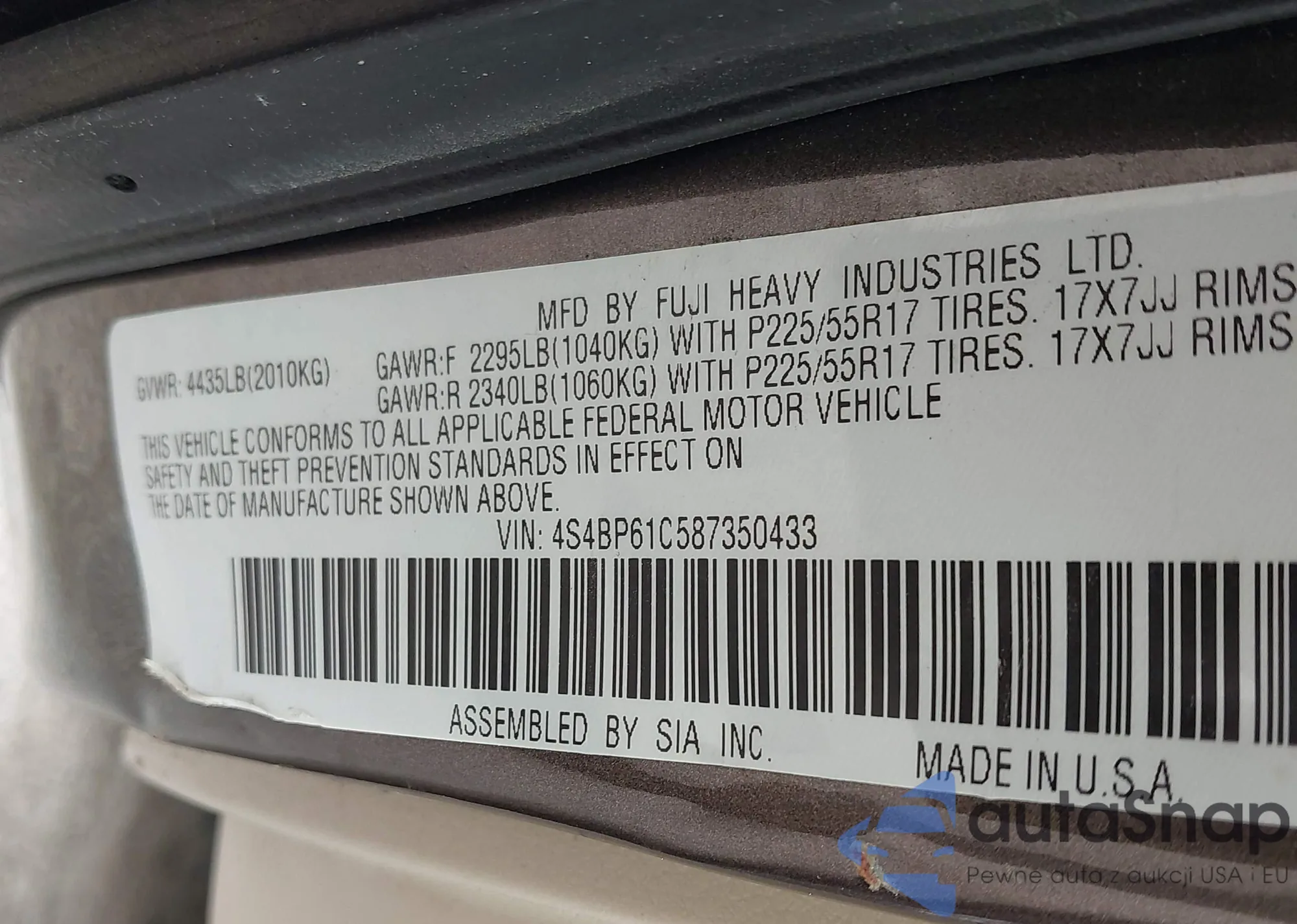 VIN: 4S4BP61C587350433