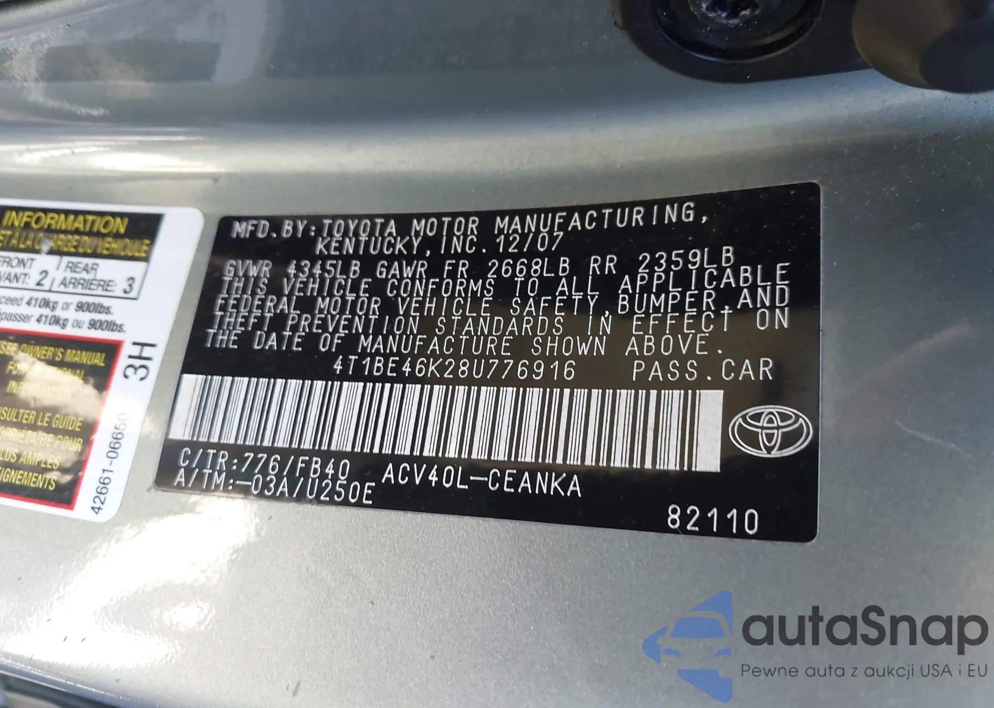 VIN: 4T1BE46K28U776916
