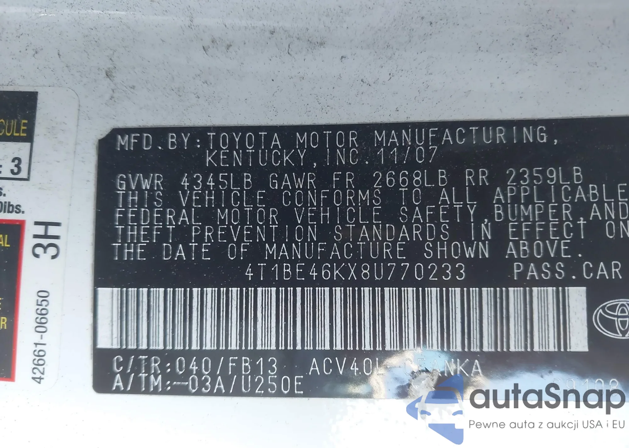 VIN: 4T1BE46KX8U770233