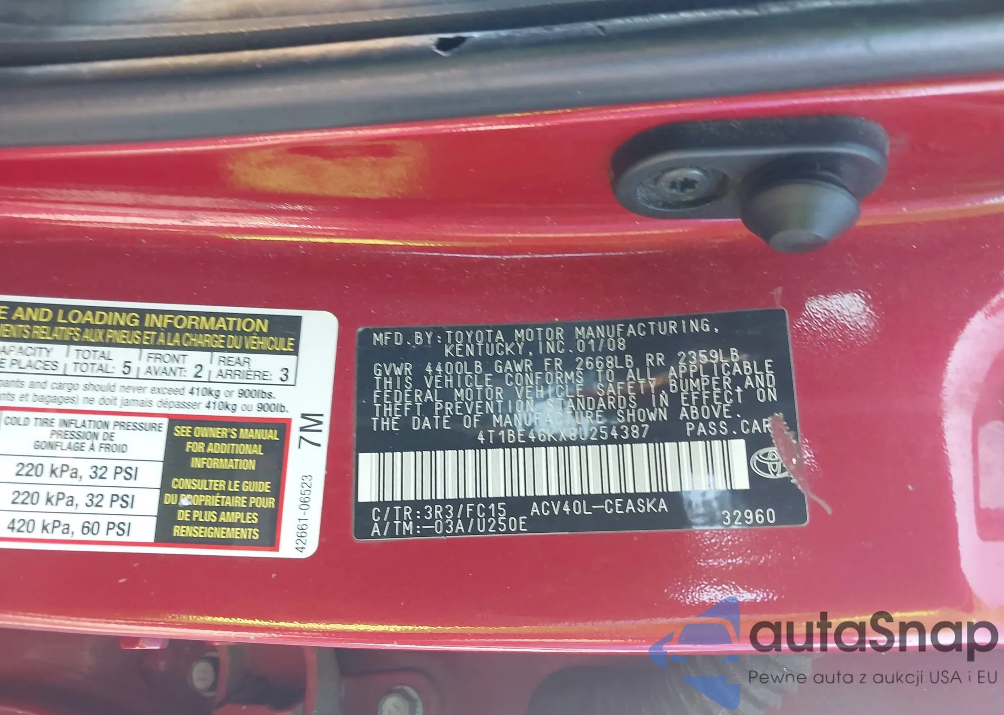 VIN: 4T1BE46KX8U254387