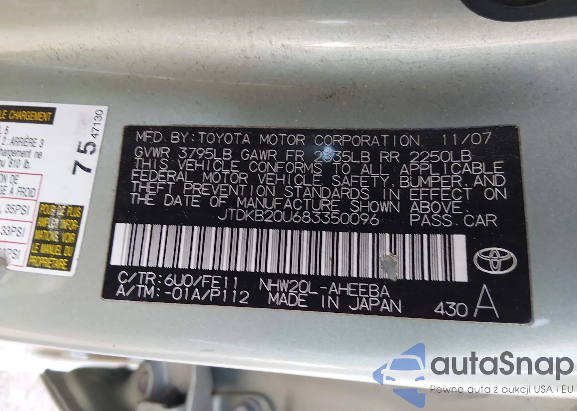 VIN: JTDKB20U683350096