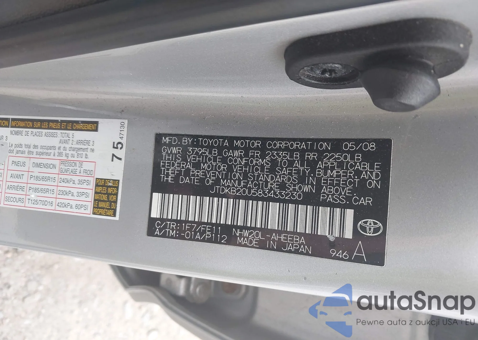 VIN: JTDKB20U583433230