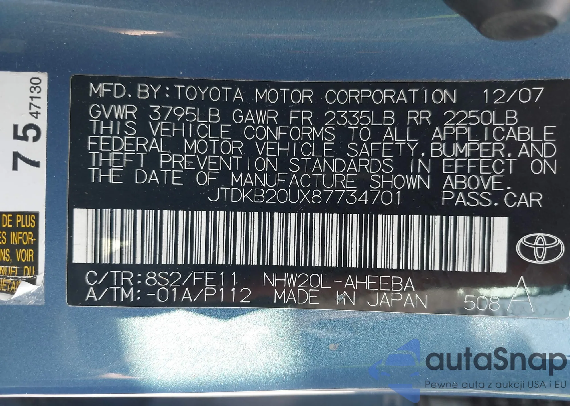 VIN: JTDKB20UX87734701