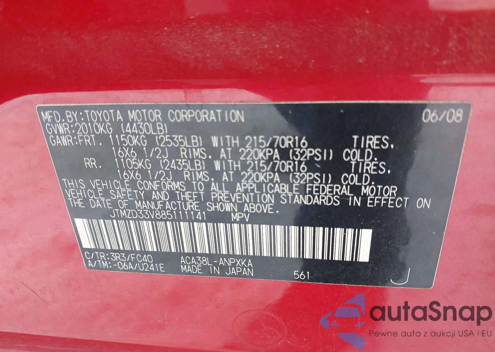 • VIN: JTMZD33V885111141