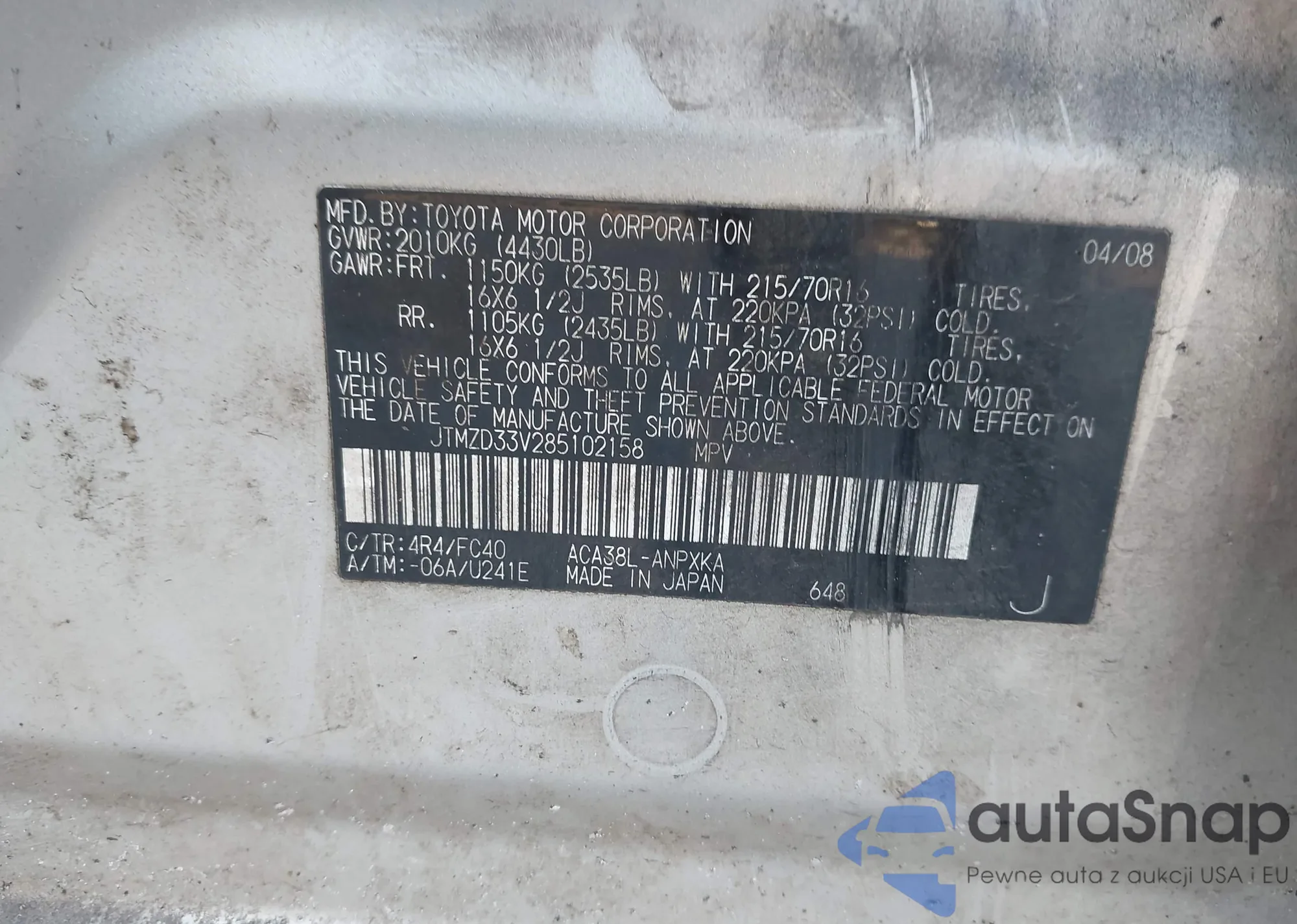 VIN: JTMZD33V285102158