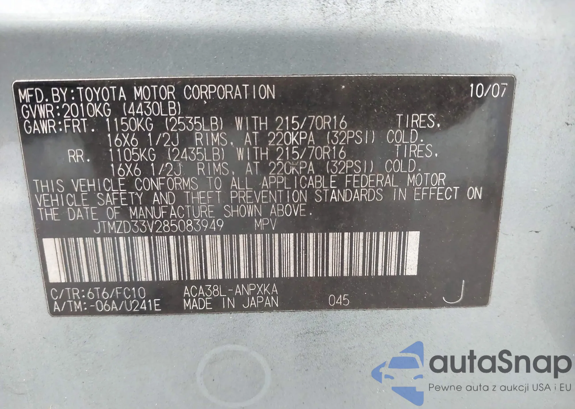 VIN: JTMZD33V285083949