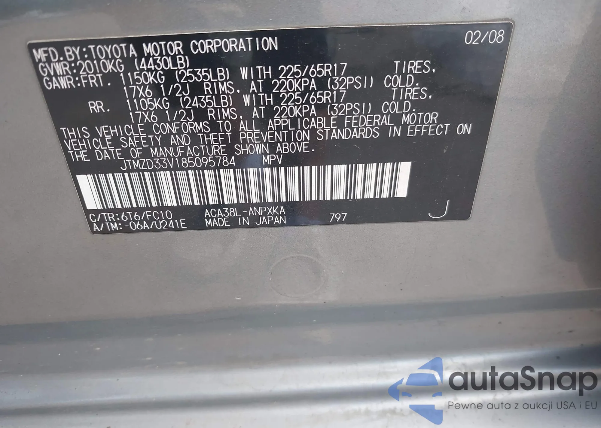 VIN: JTMZD33V185095784