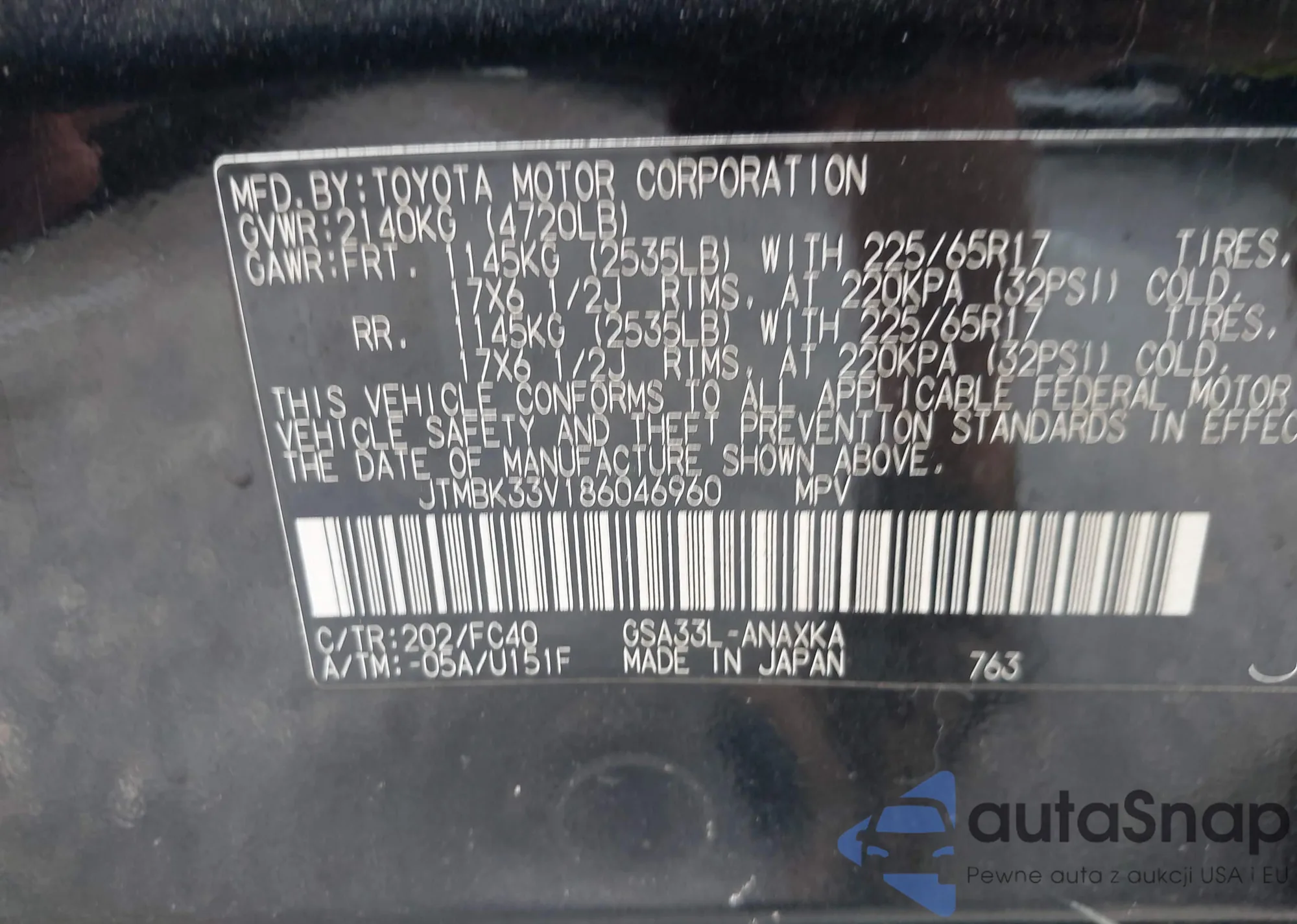 VIN: JTMBK33V186046960