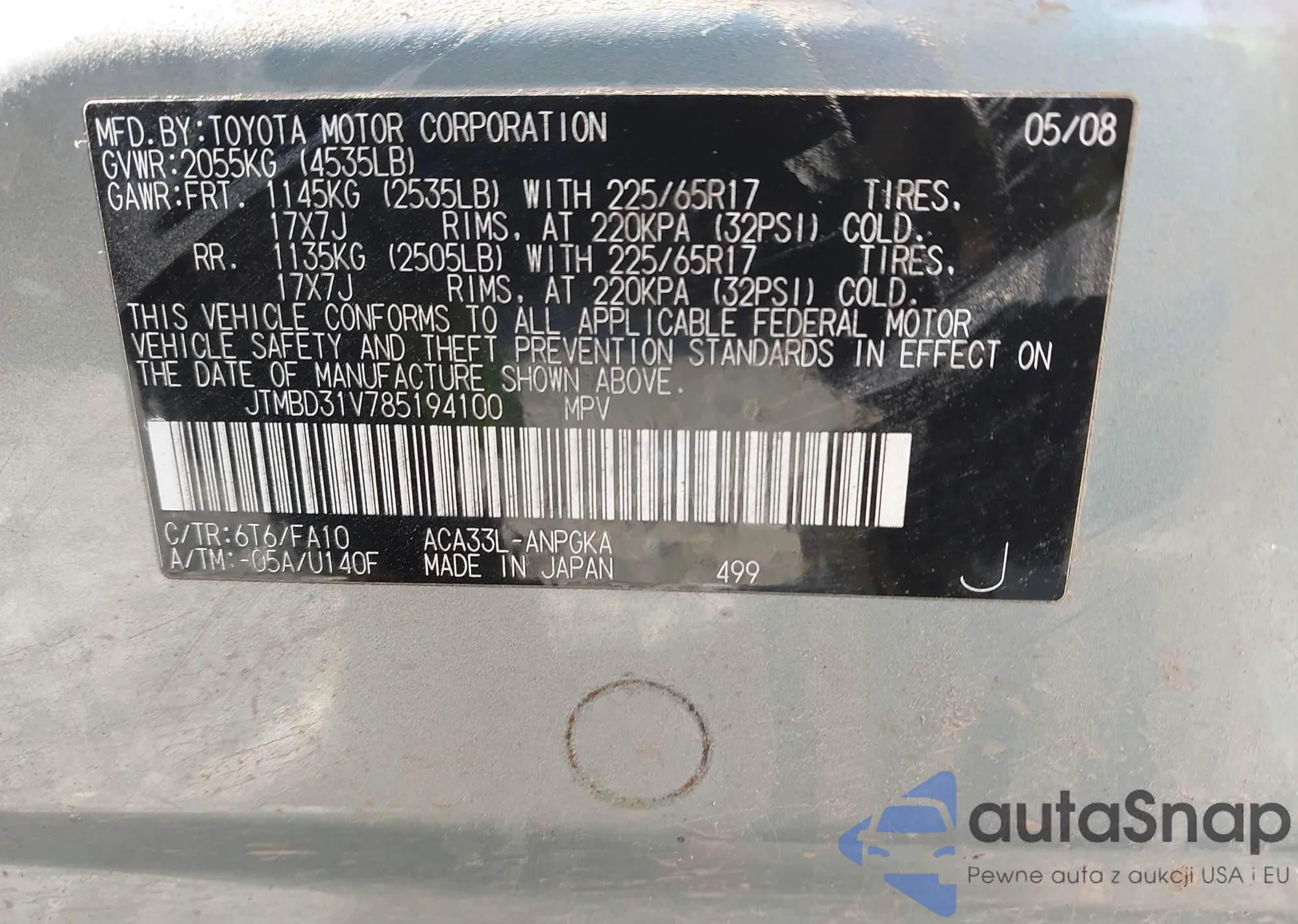 VIN: JTMBD31V785194100