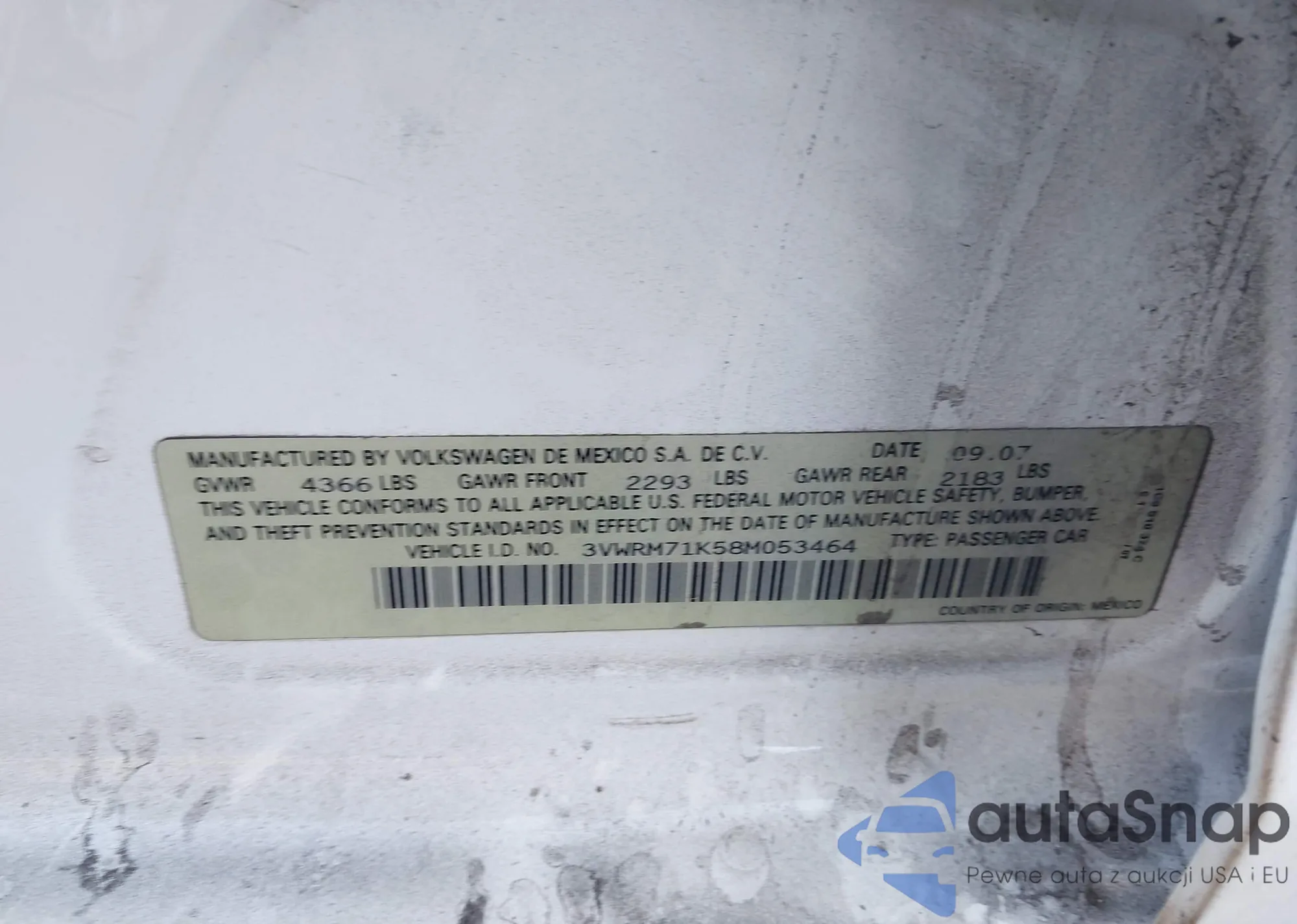 VIN: 3VWRM71K58M053464