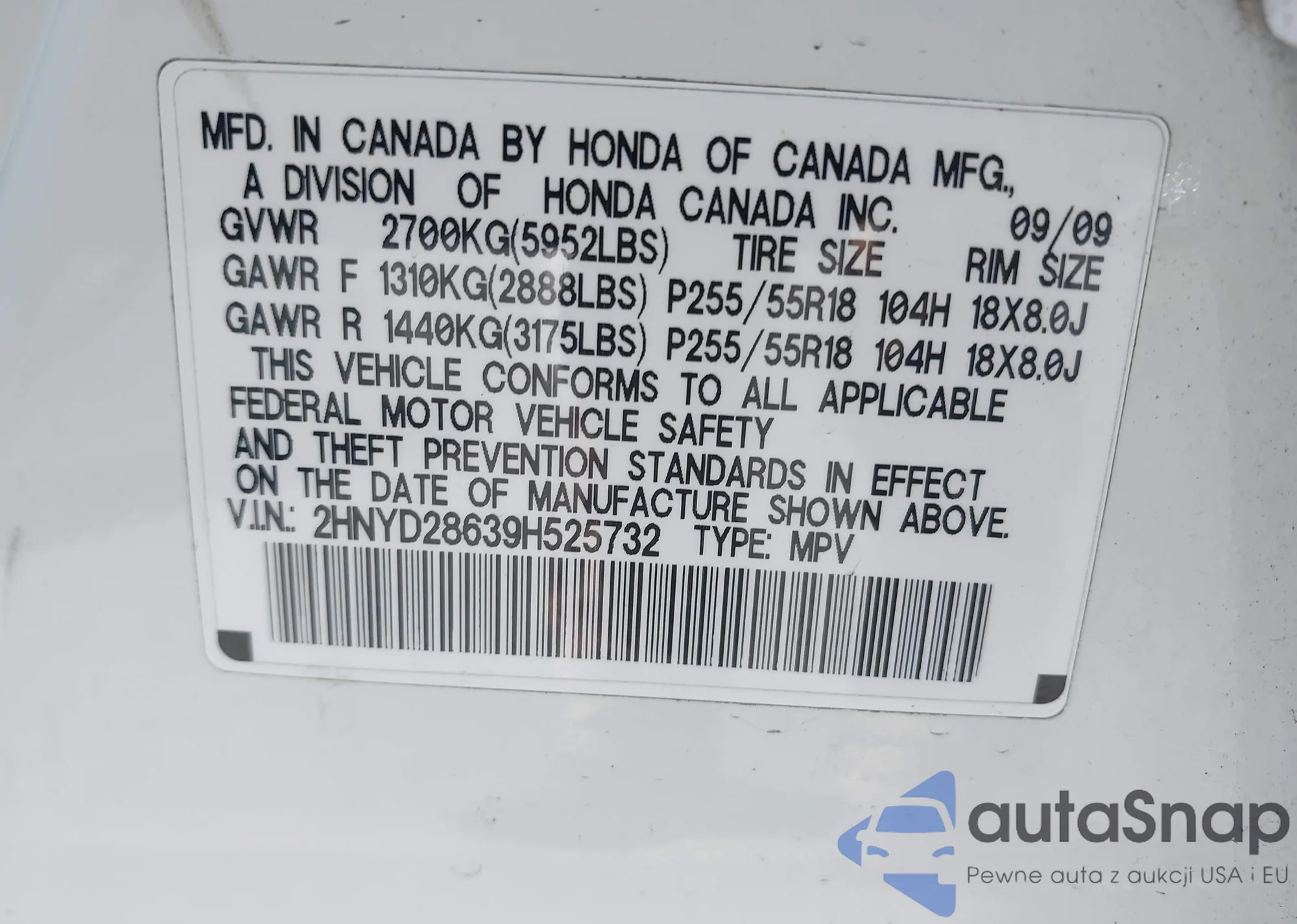 VIN: 2HNYD28639H525732