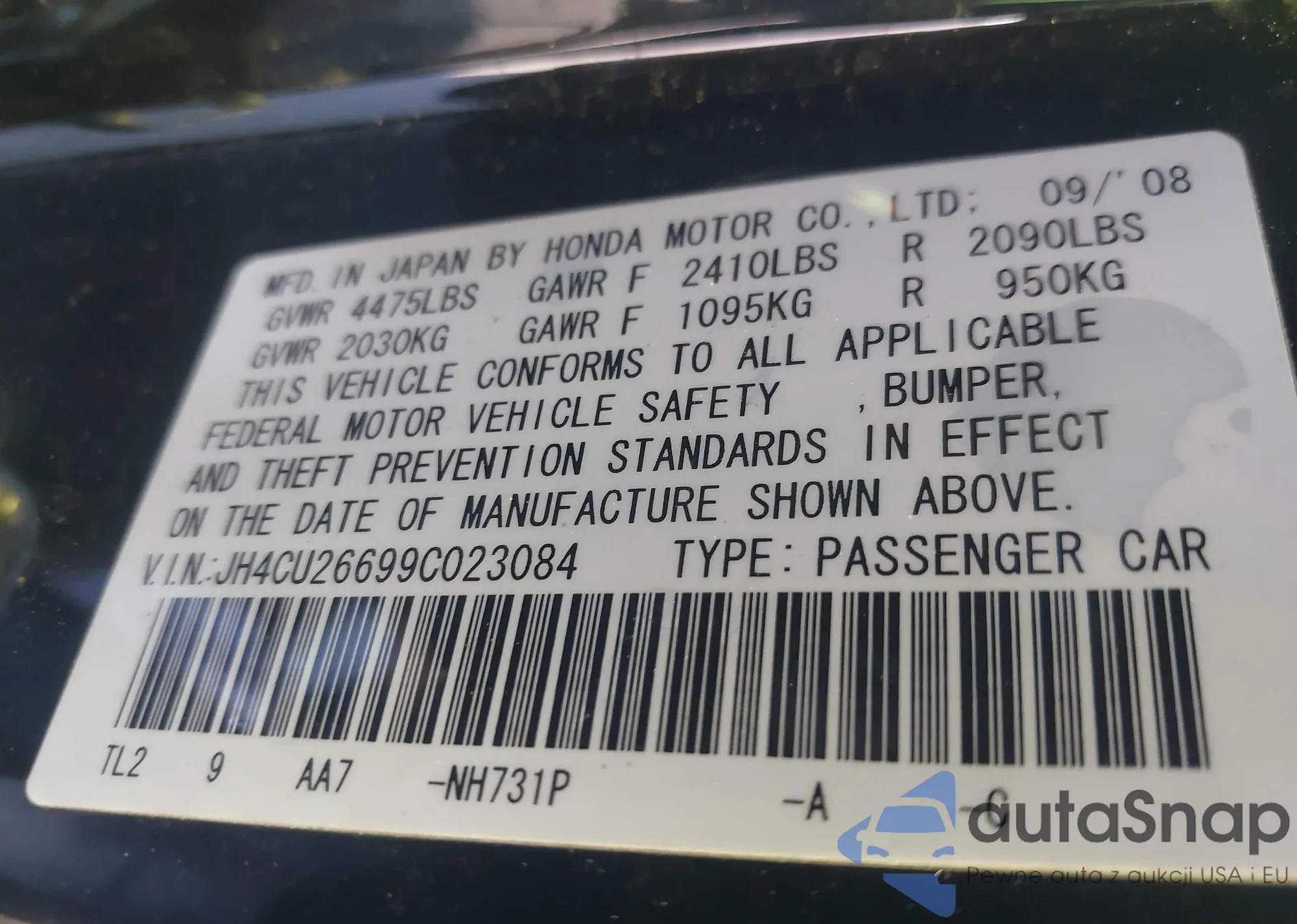 • VIN: JH4CU26699C023084