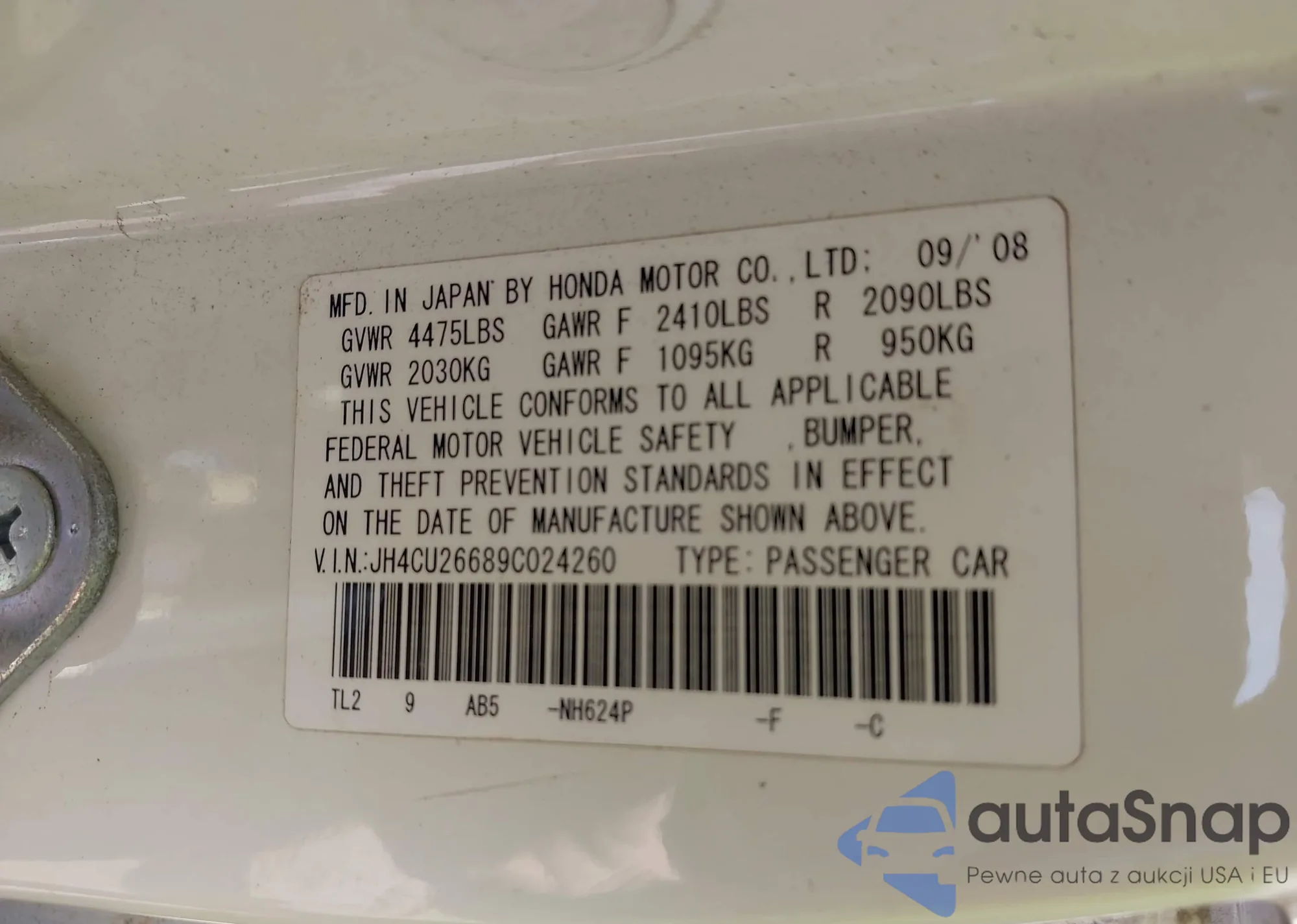 VIN: JH4CU26689C024260