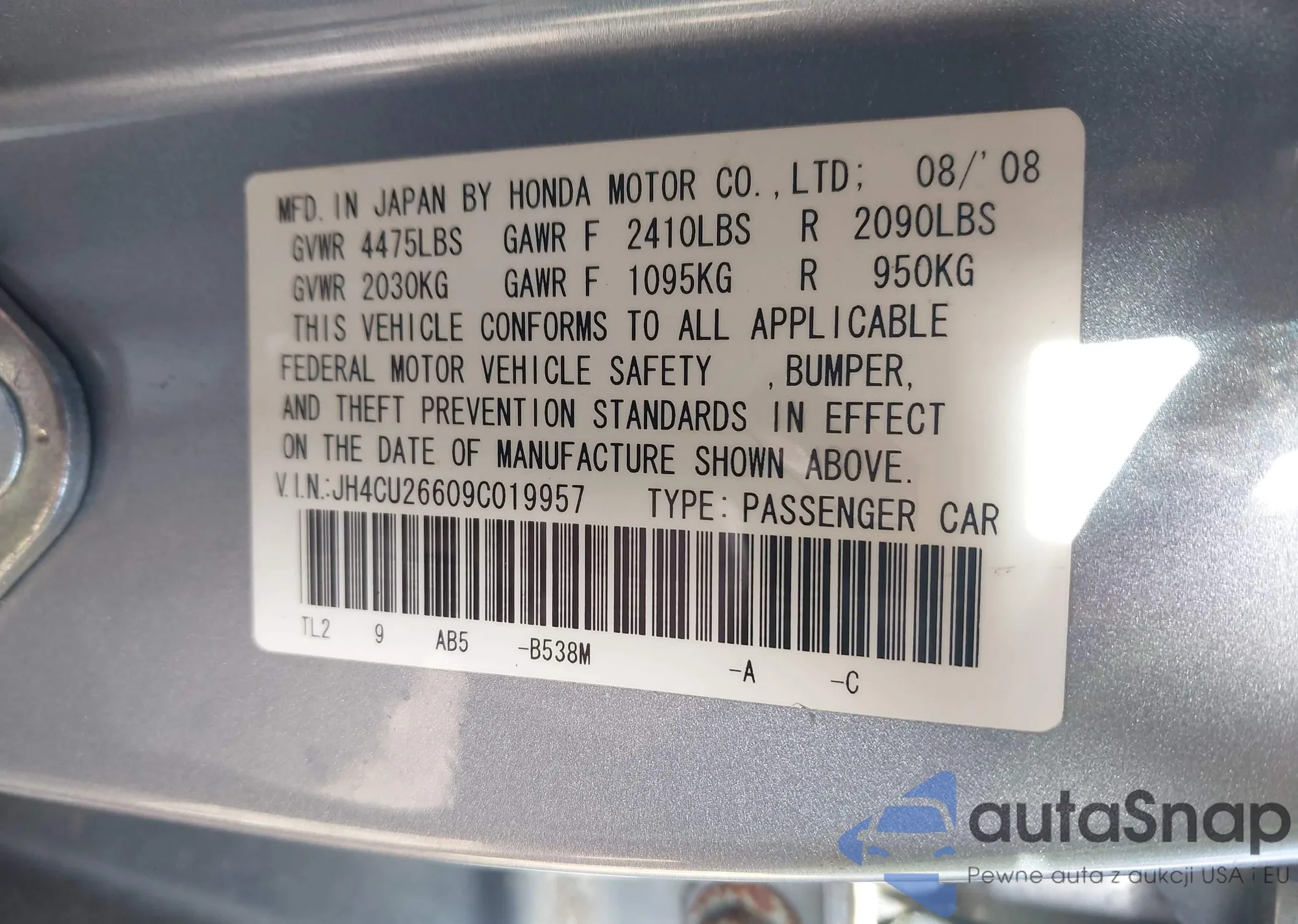 VIN: JH4CU26609C019957