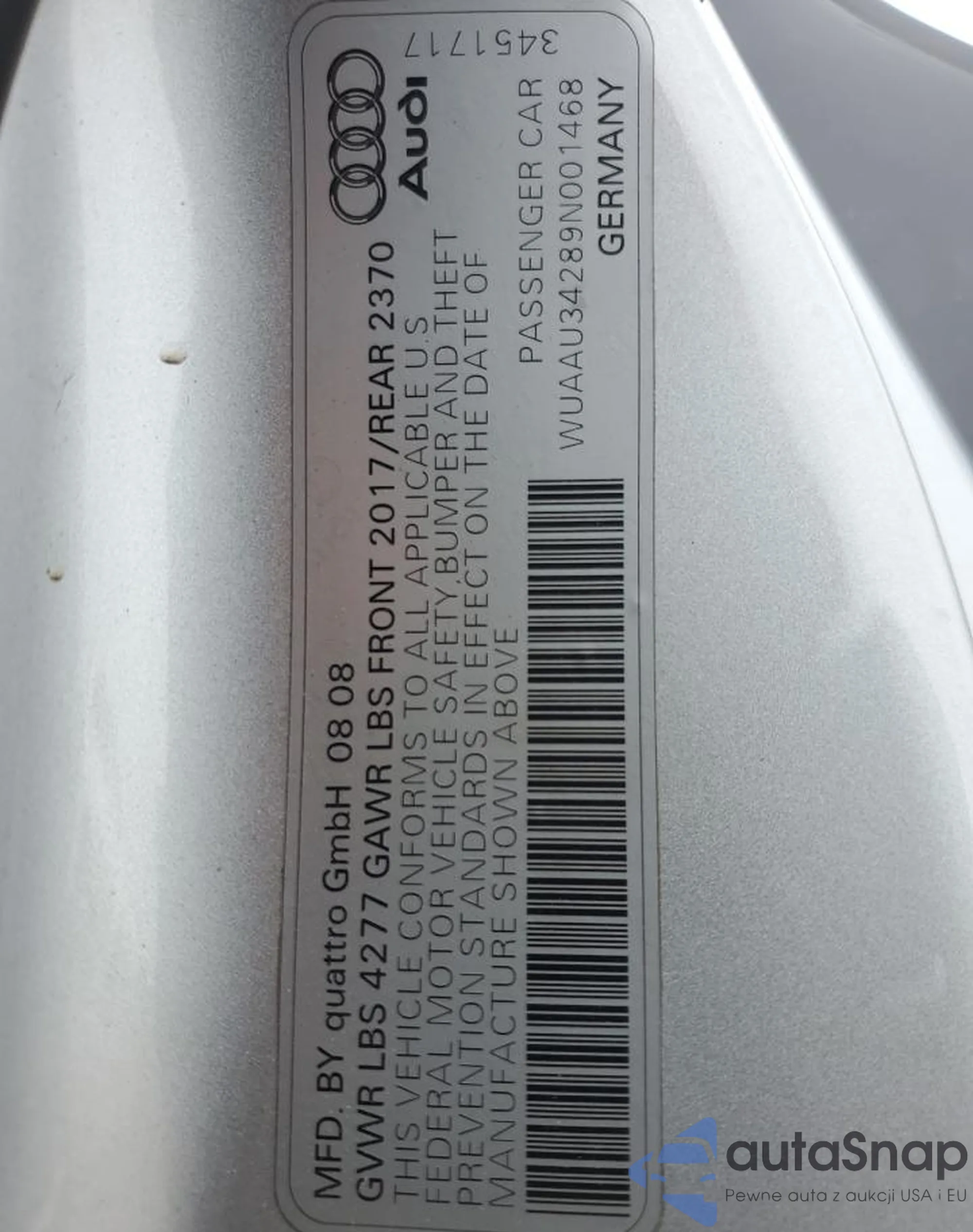 VIN: WUAAU34289N001468