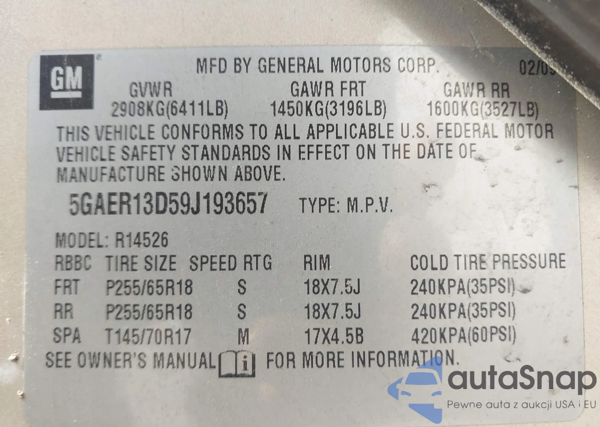 VIN: 5GAER13D59J193657