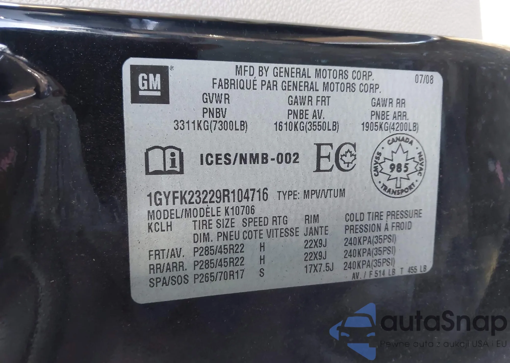 VIN: 1GYFK23229R104716