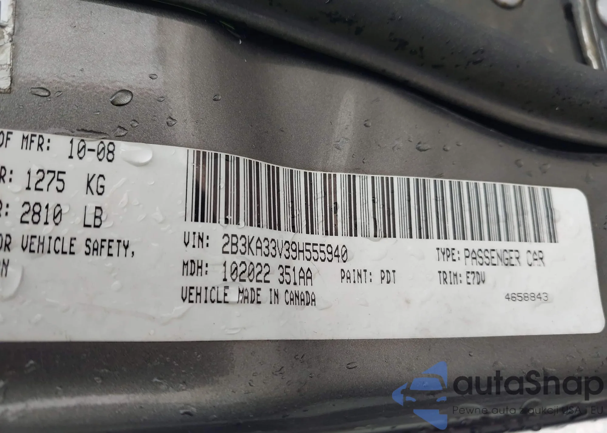 VIN: 2B3KA33V39H555940