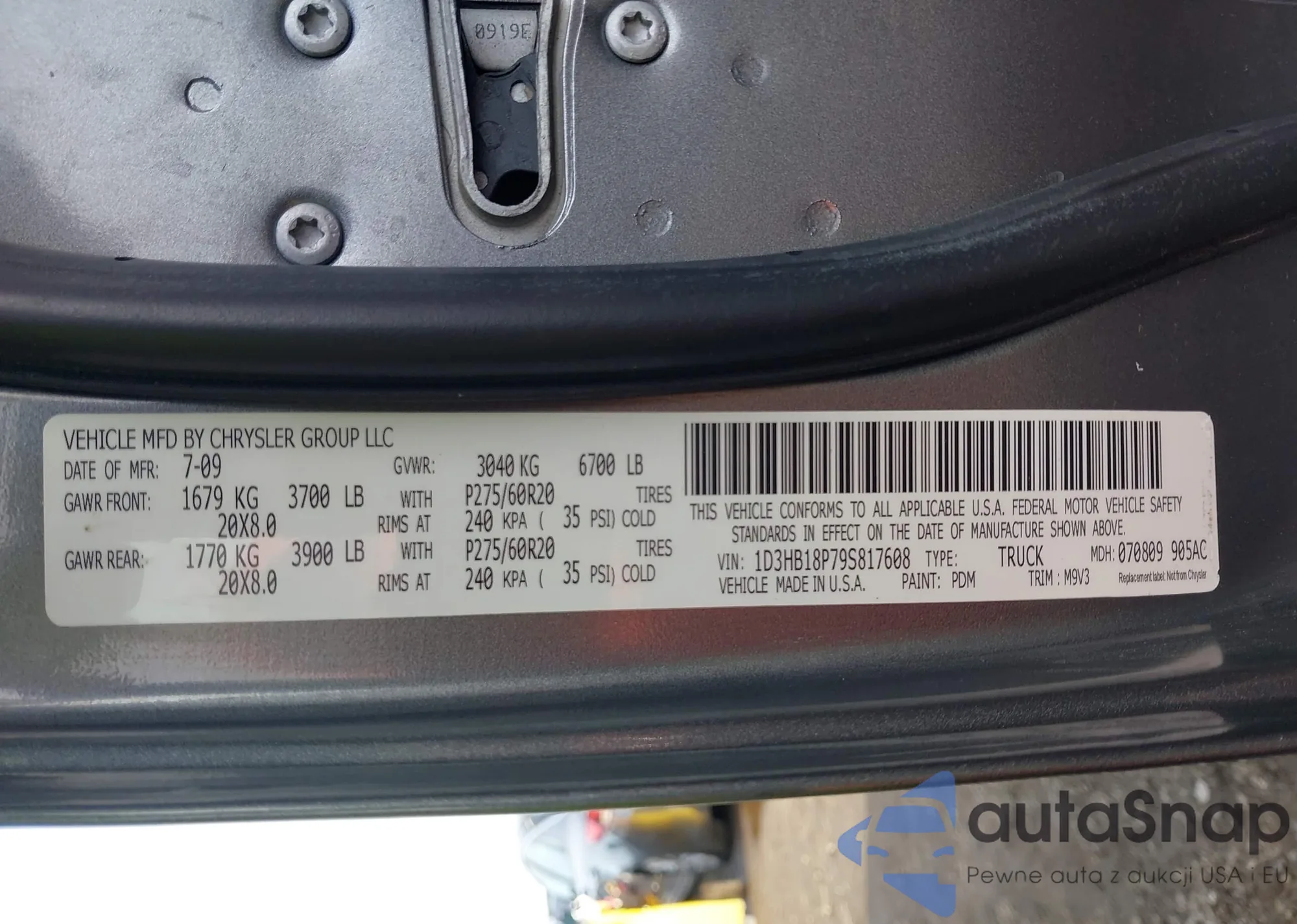 VIN: 1D3HB18P79S817608