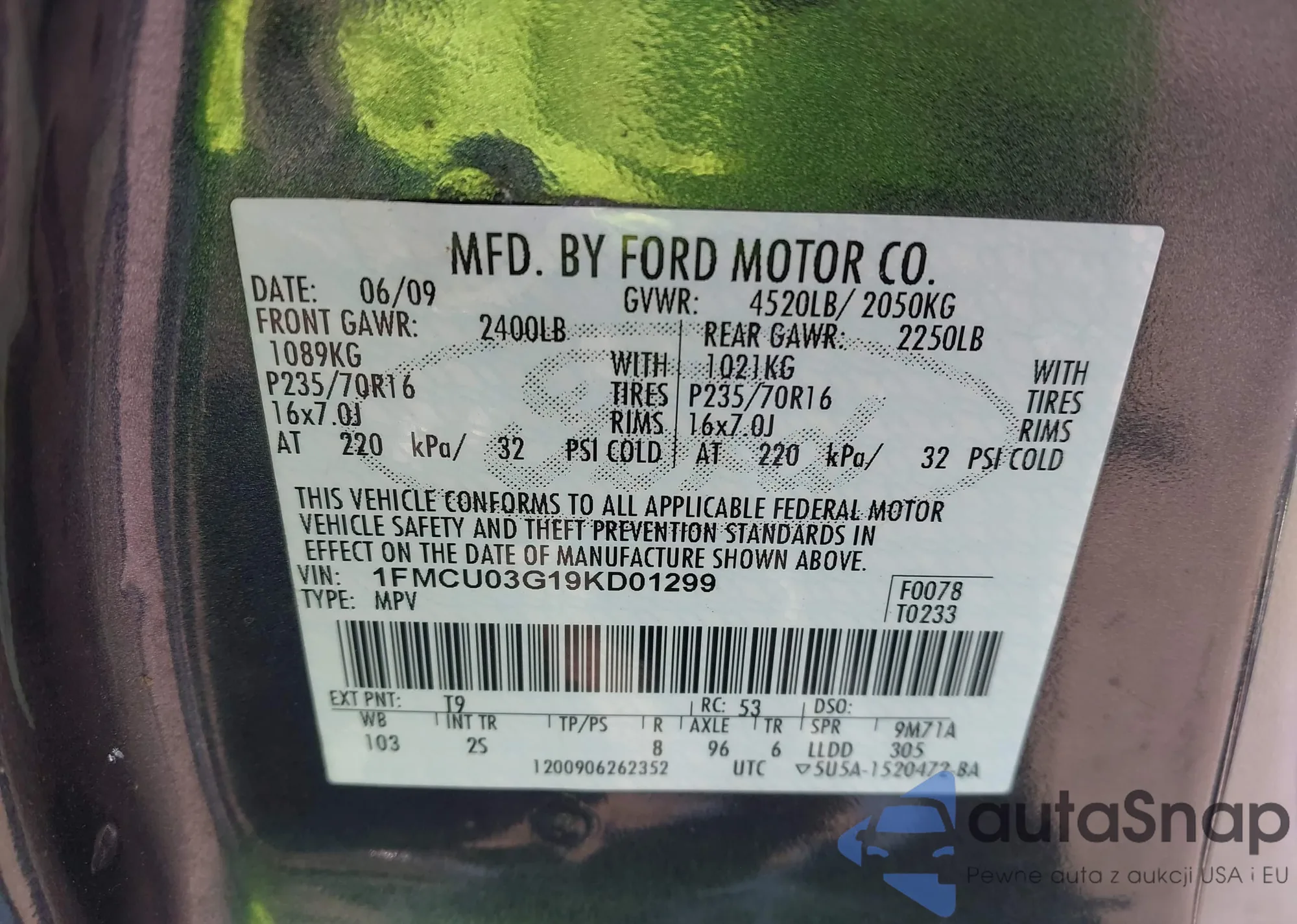 VIN: 1FMCU03G19KD01299