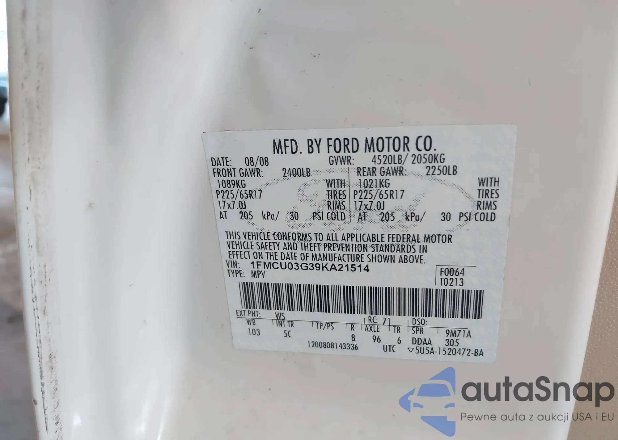 VIN: 1FMCU03G39KA21514