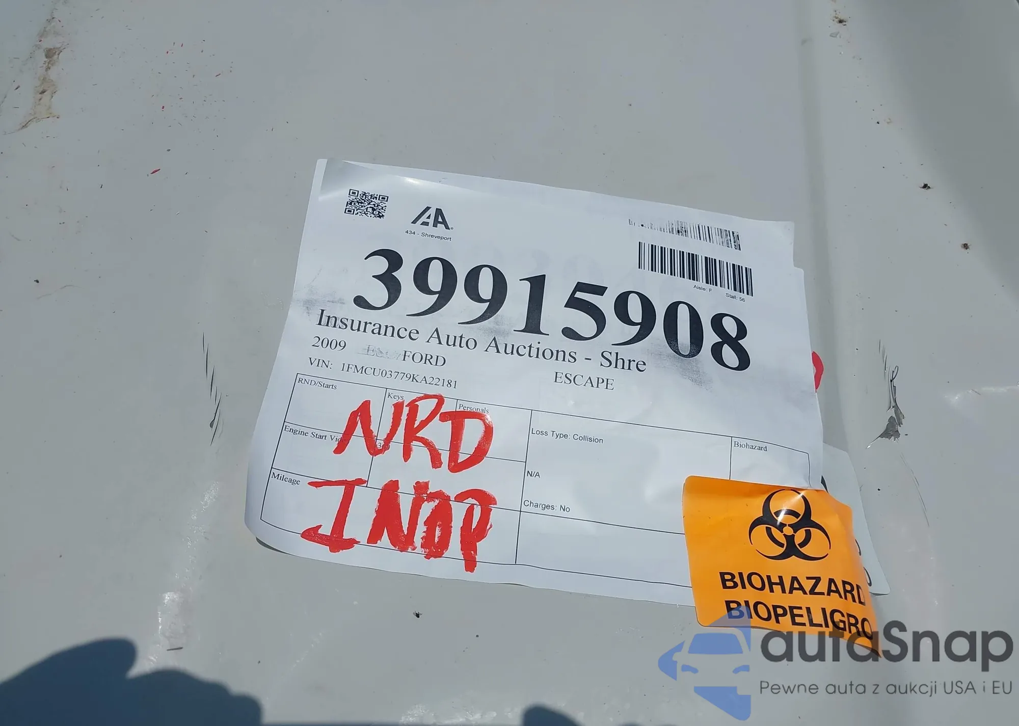 Автомобиль Ford Escape 2009 (VIN 1FMCU03779KA22181) продаётся непроверенным продавцом. Рекомендуем проверить отчет Carfax и подтвердить возможность регистрации перед покупкой.