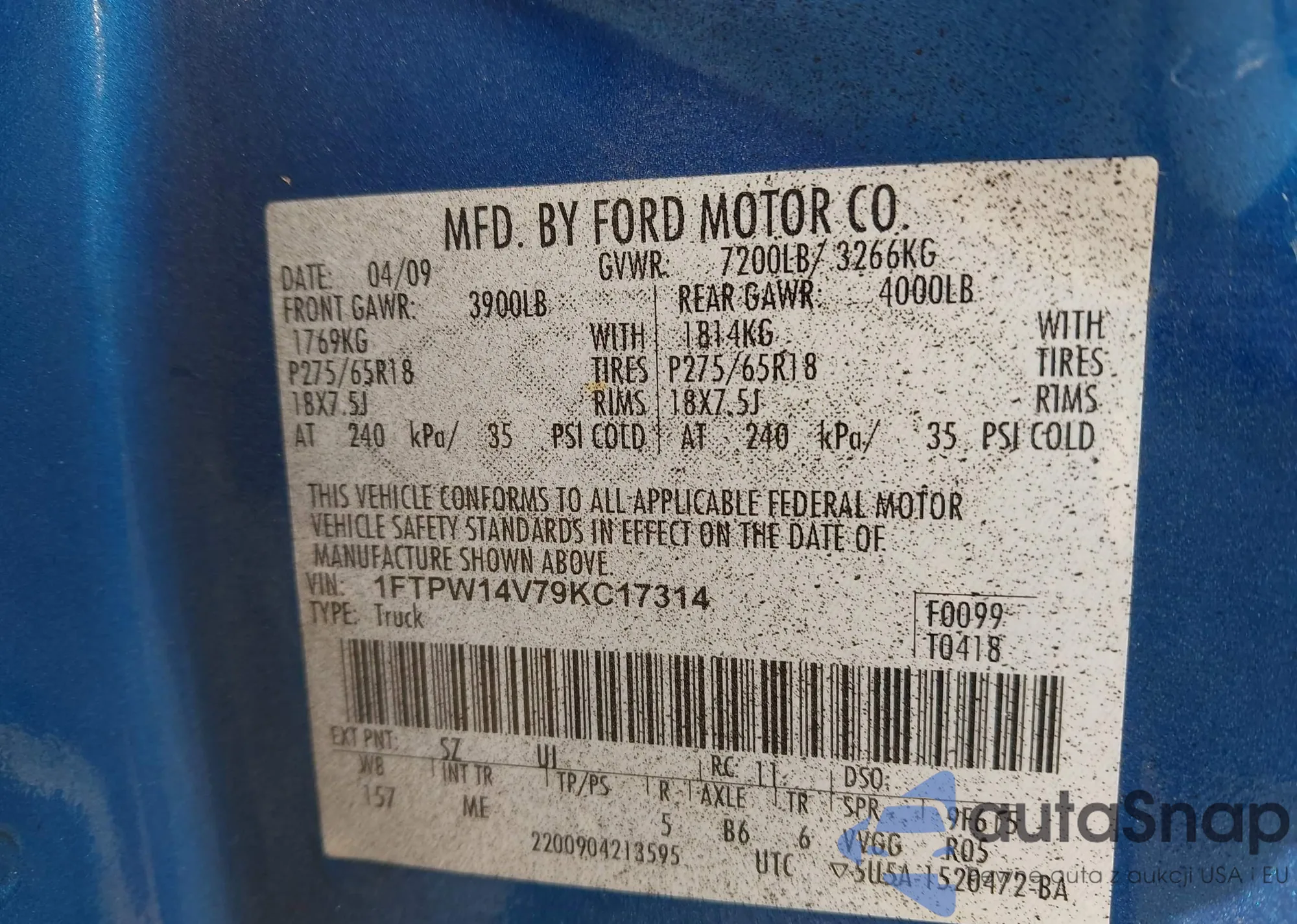VIN: 1FTPW14V79KC17314